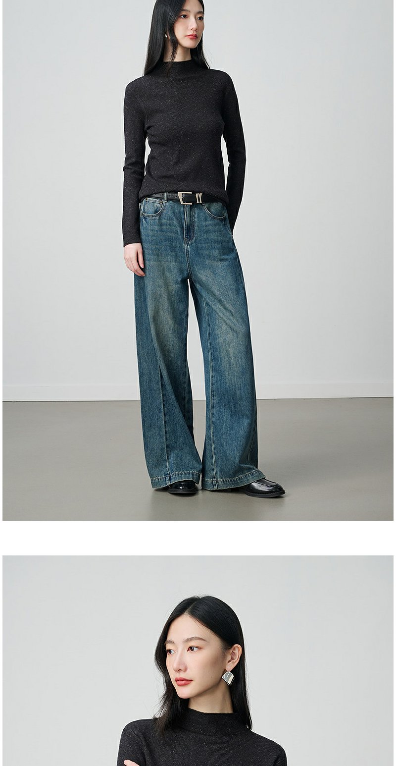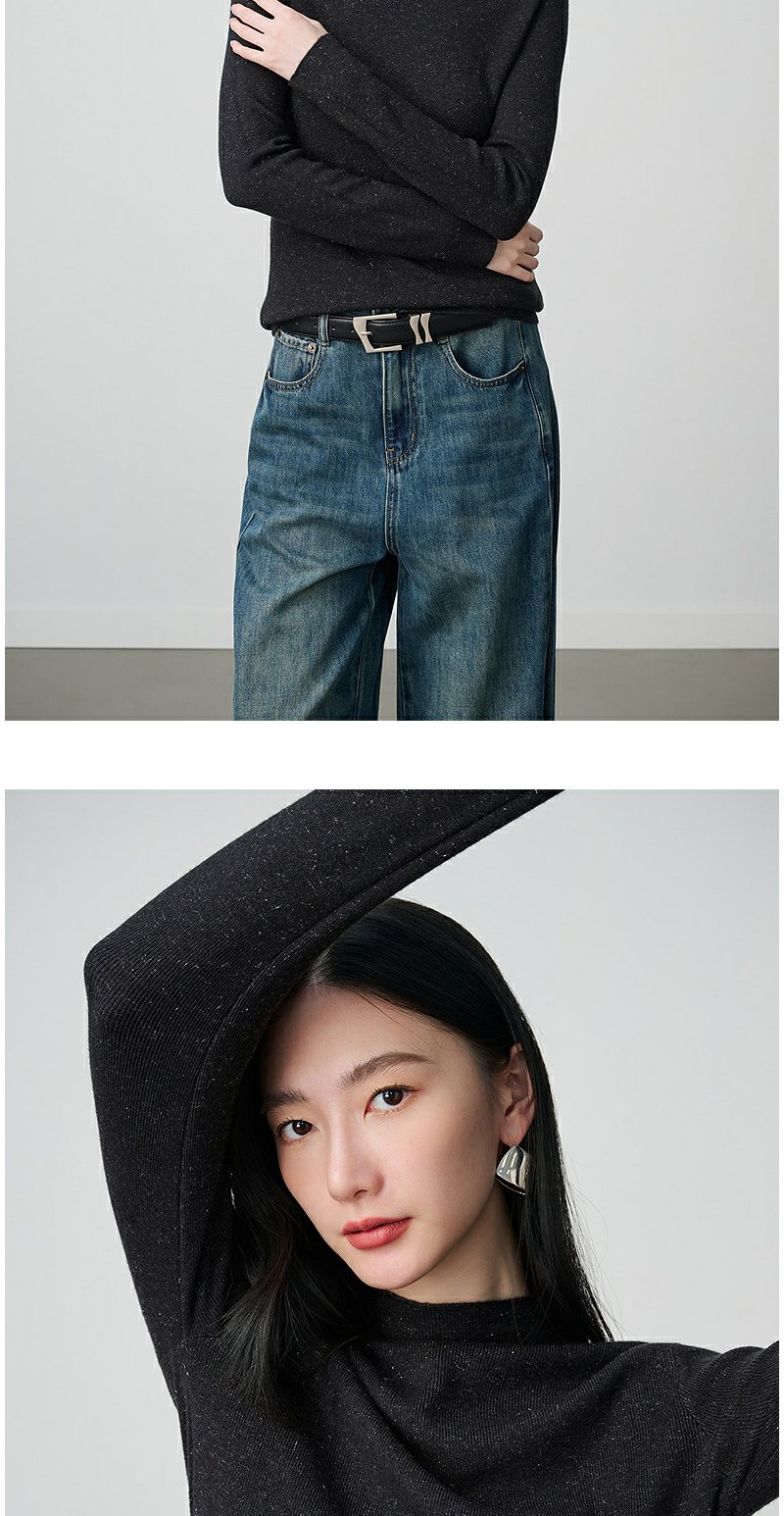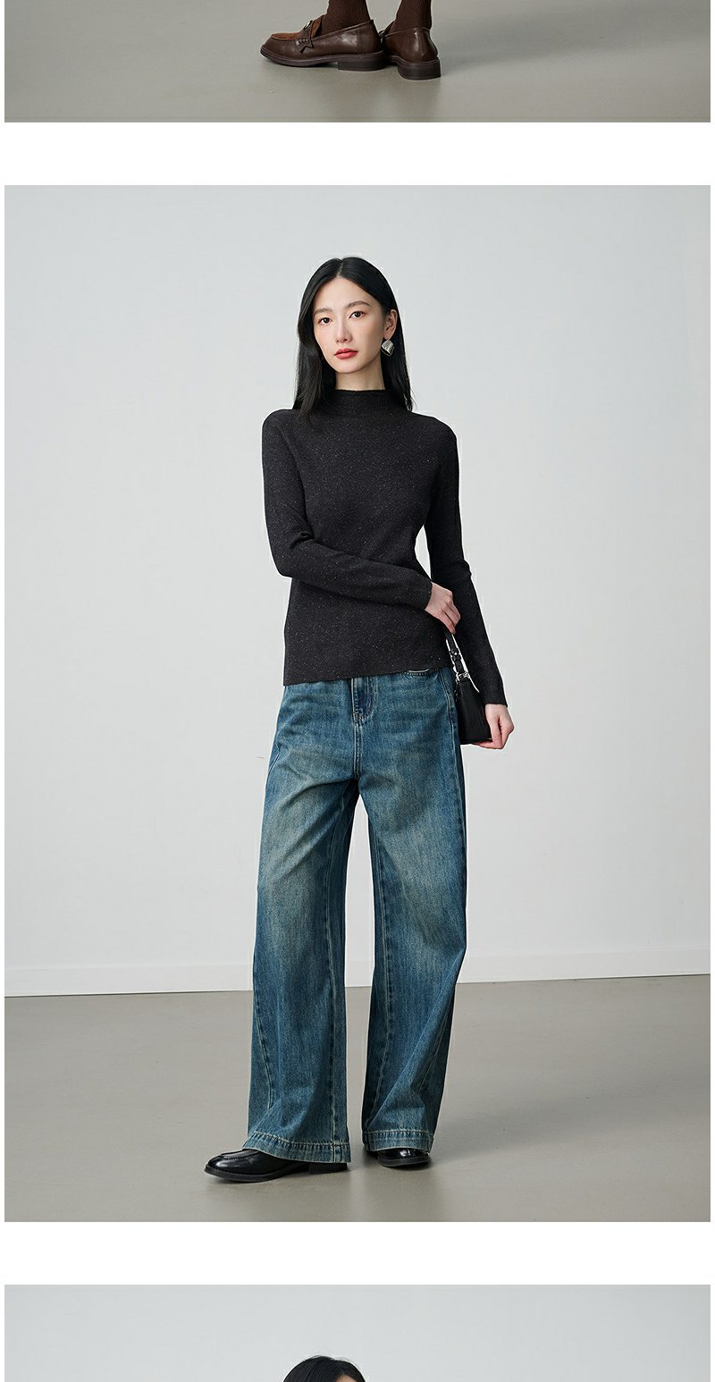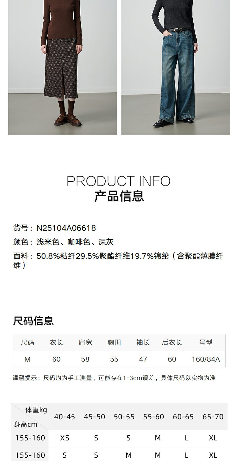 NEELLY纳俪商场同款冬新款优雅百搭显瘦针织衫女半高领亲肤打底衫N25104A06618