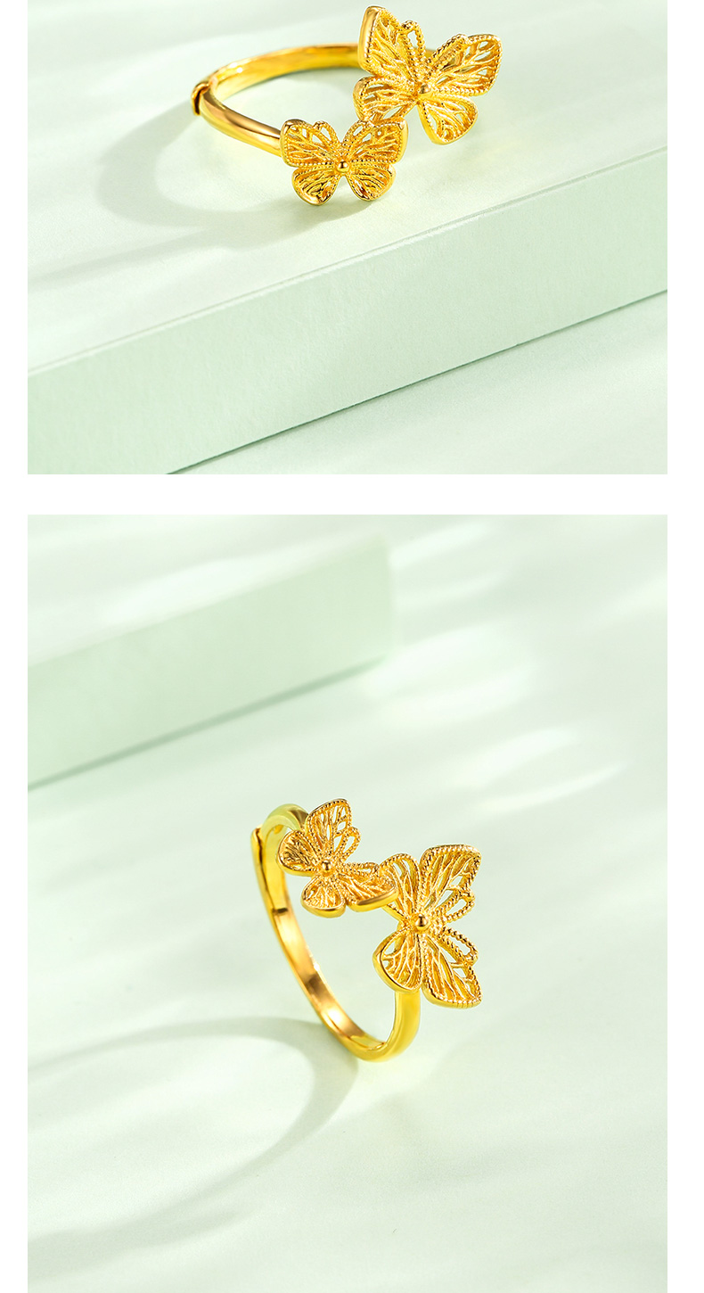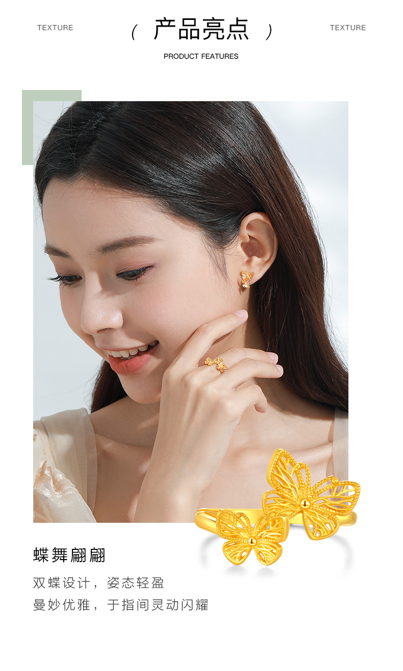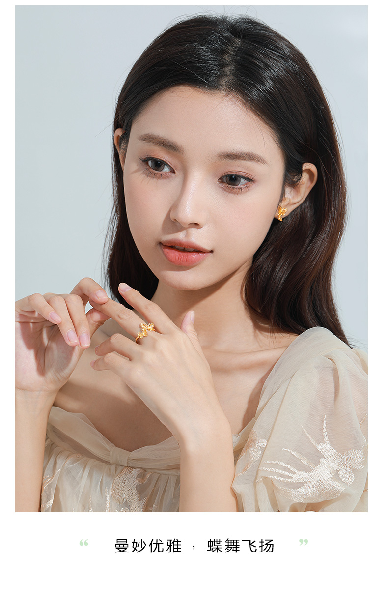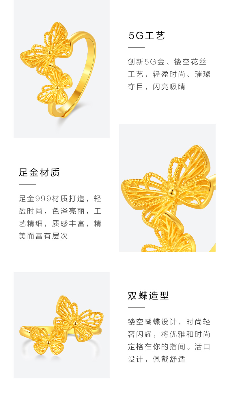 中国珠宝 5G黄金足金999蝴蝶翩翩戒指女款精致镂空活口戒指女送礼