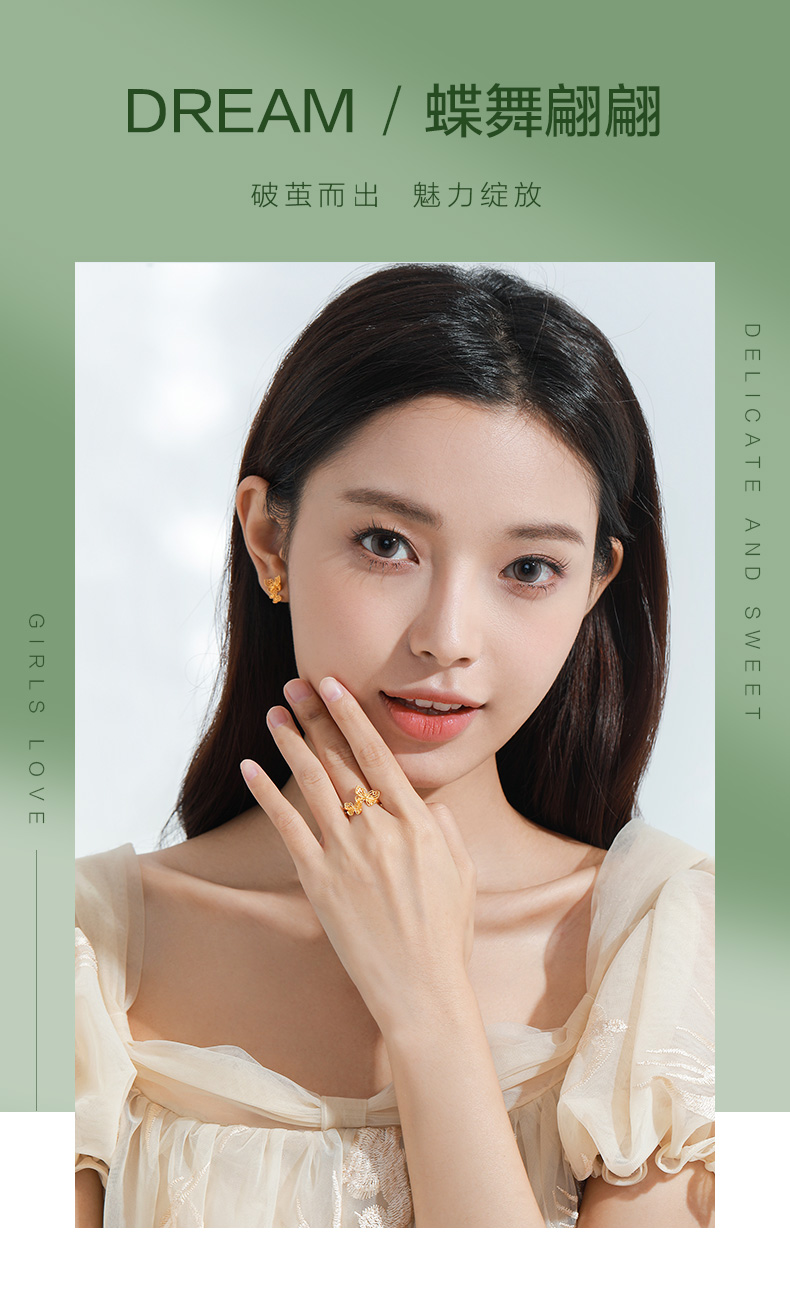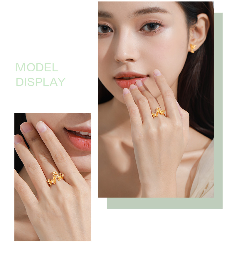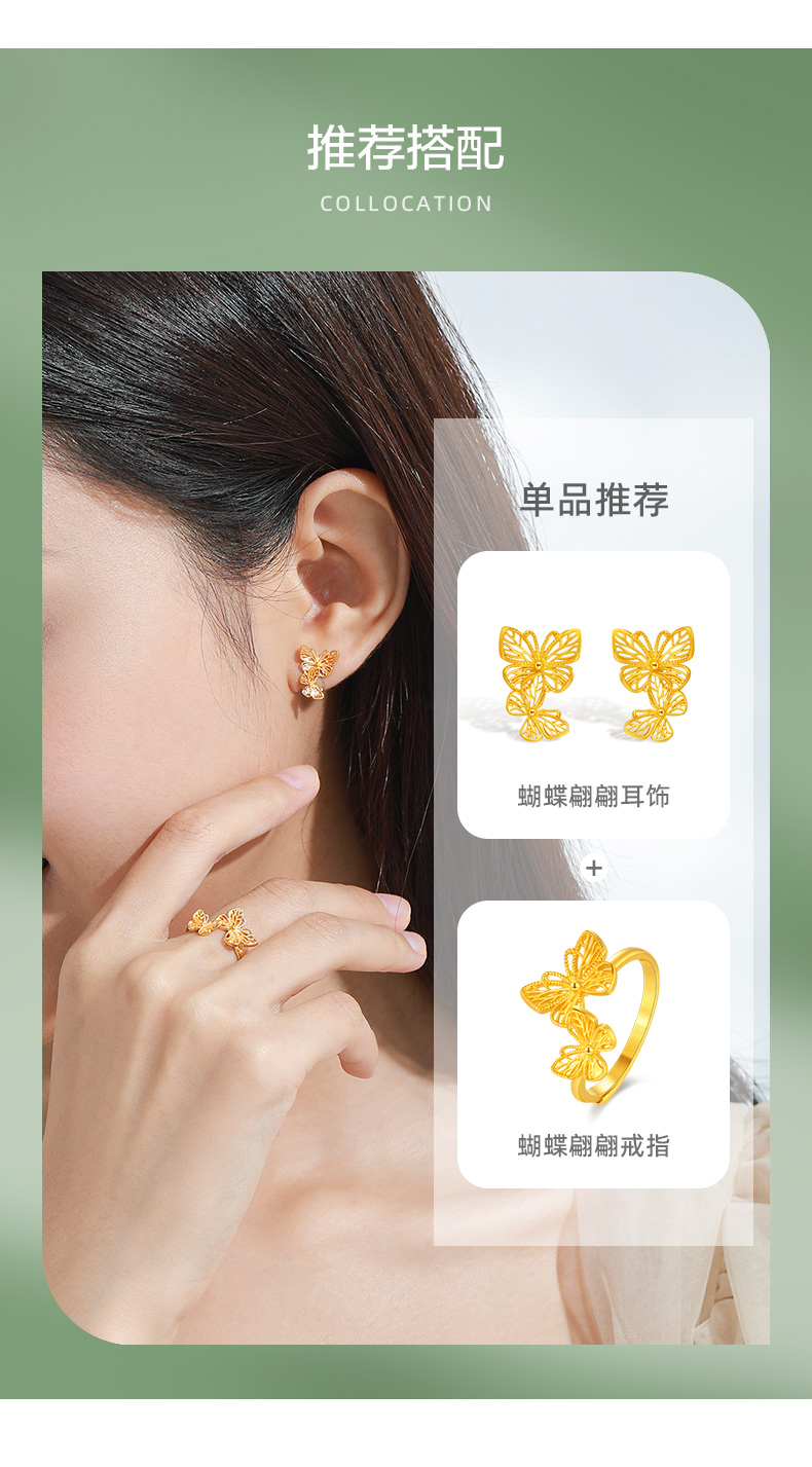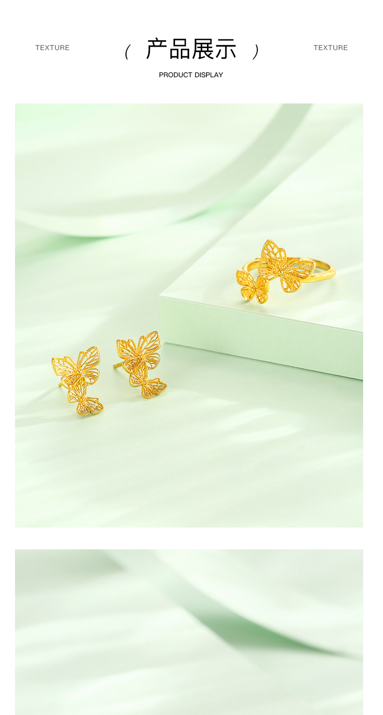 中国珠宝 5G黄金足金999蝴蝶翩翩戒指女款精致镂空活口戒指女送礼