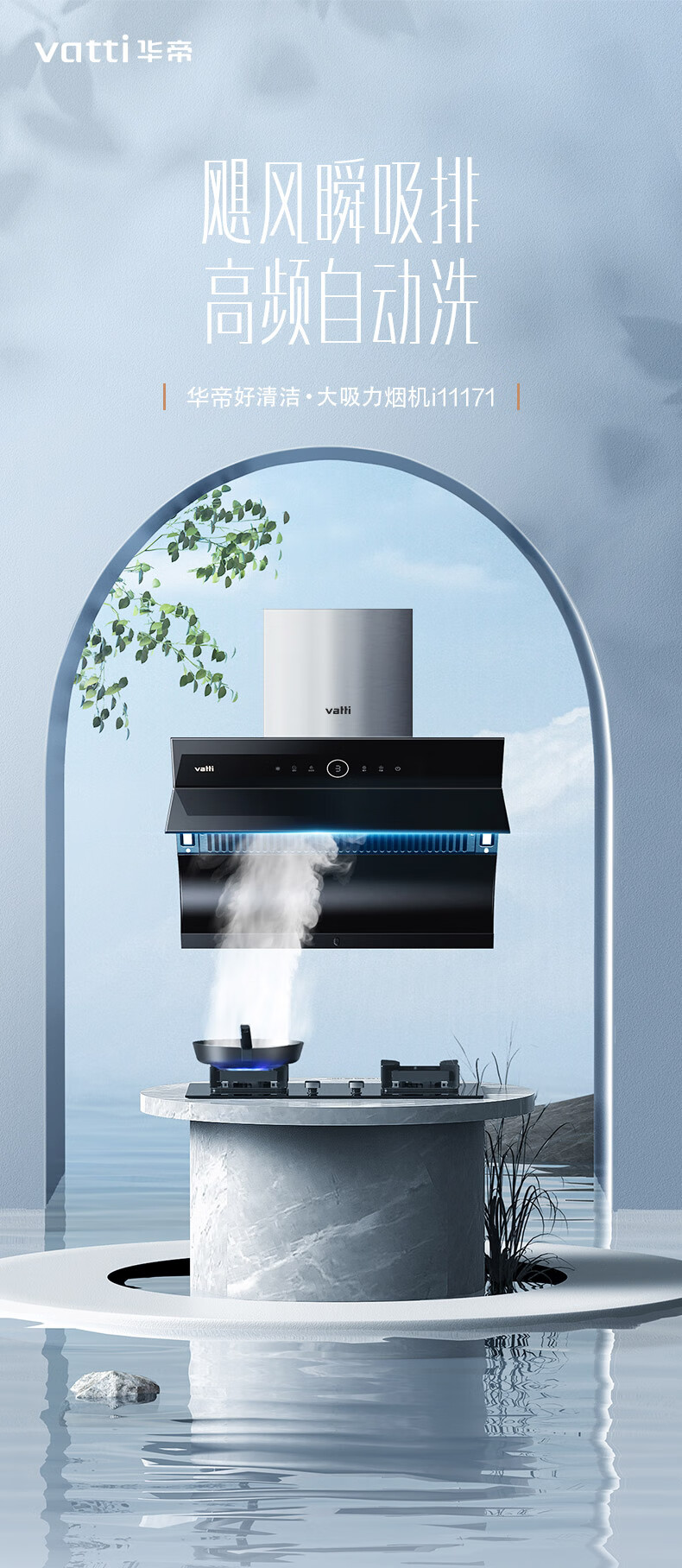 华帝(VATTI)i11171侧吸抽油烟机 23风量大吸力智能挥手控制 高频自动洗450pa速排烟机 油烟机 单品