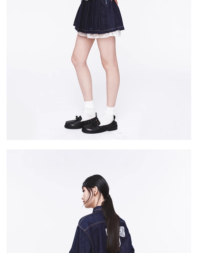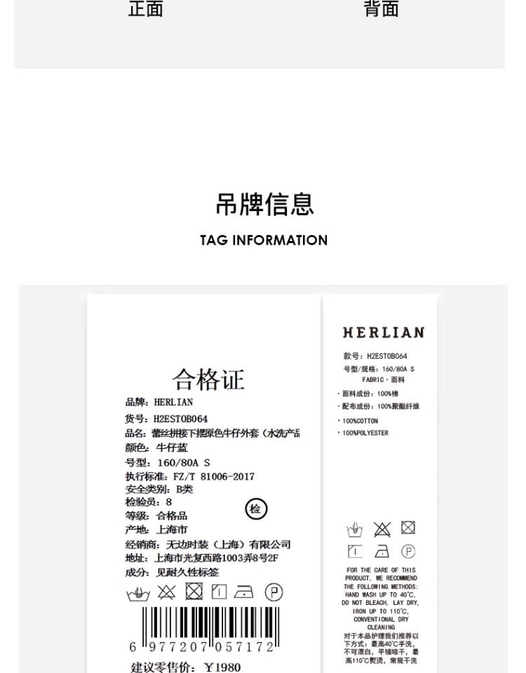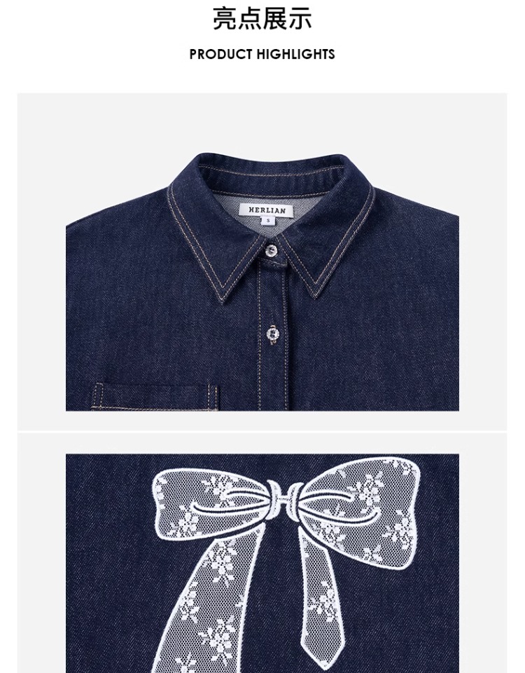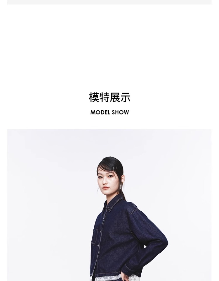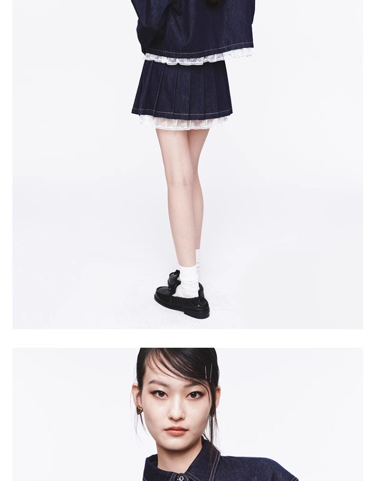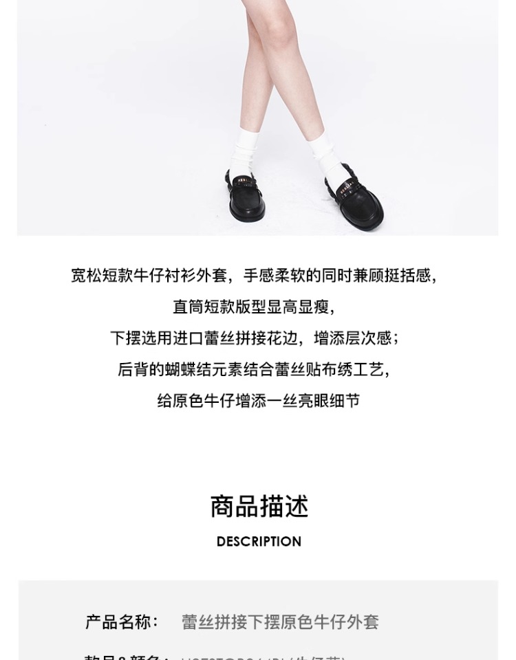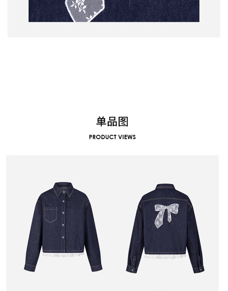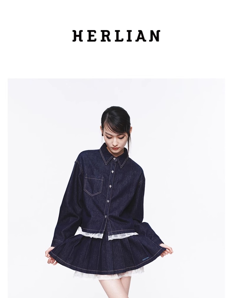 HERLIAN 2025年春季新品蕾丝拼接下摆原色牛仔外套