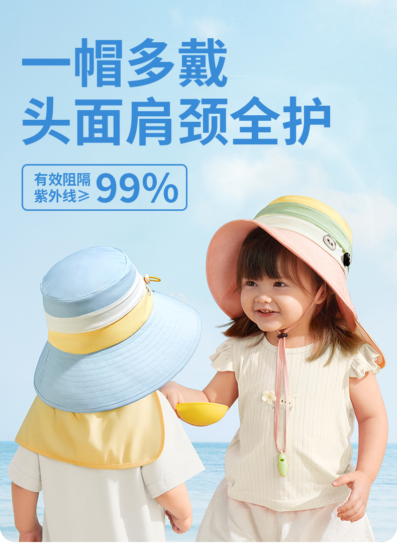 宝宝防晒帽夏季防紫外线儿童遮阳帽薄款男童女孩渔夫帽子2025新款