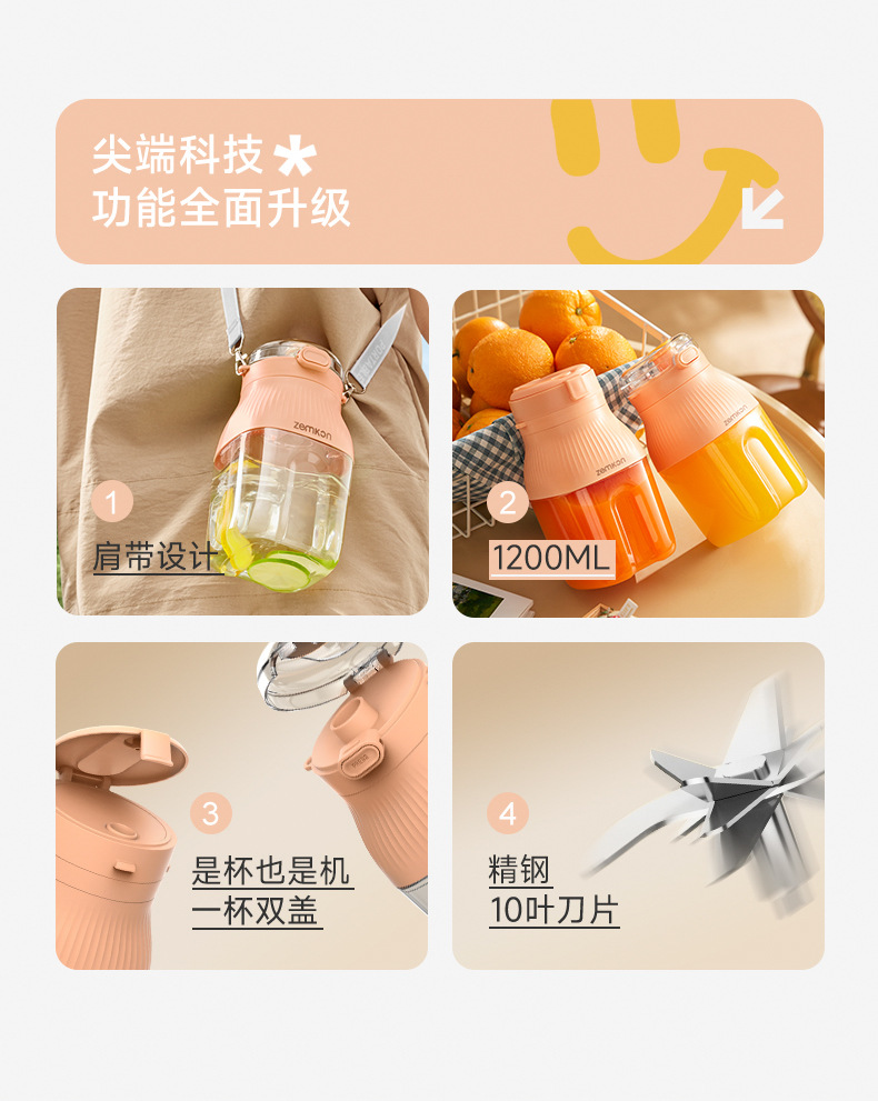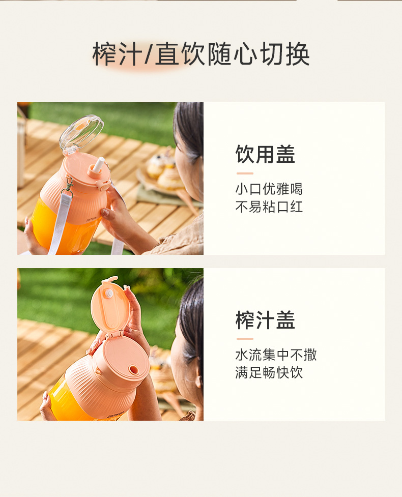 【夏日限定!轻奢鲜榨摇摇杯】双盖设计,榨汁/直饮随心切换,便携背带,想去哪喝到哪!榨汁机便携小质水果做果汁机多功能电动吨吨杯榨汁杯