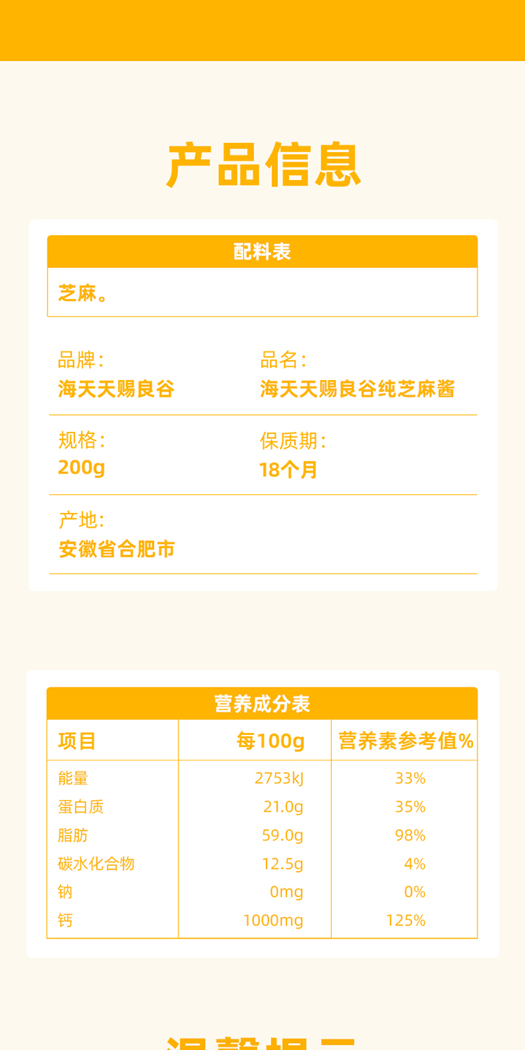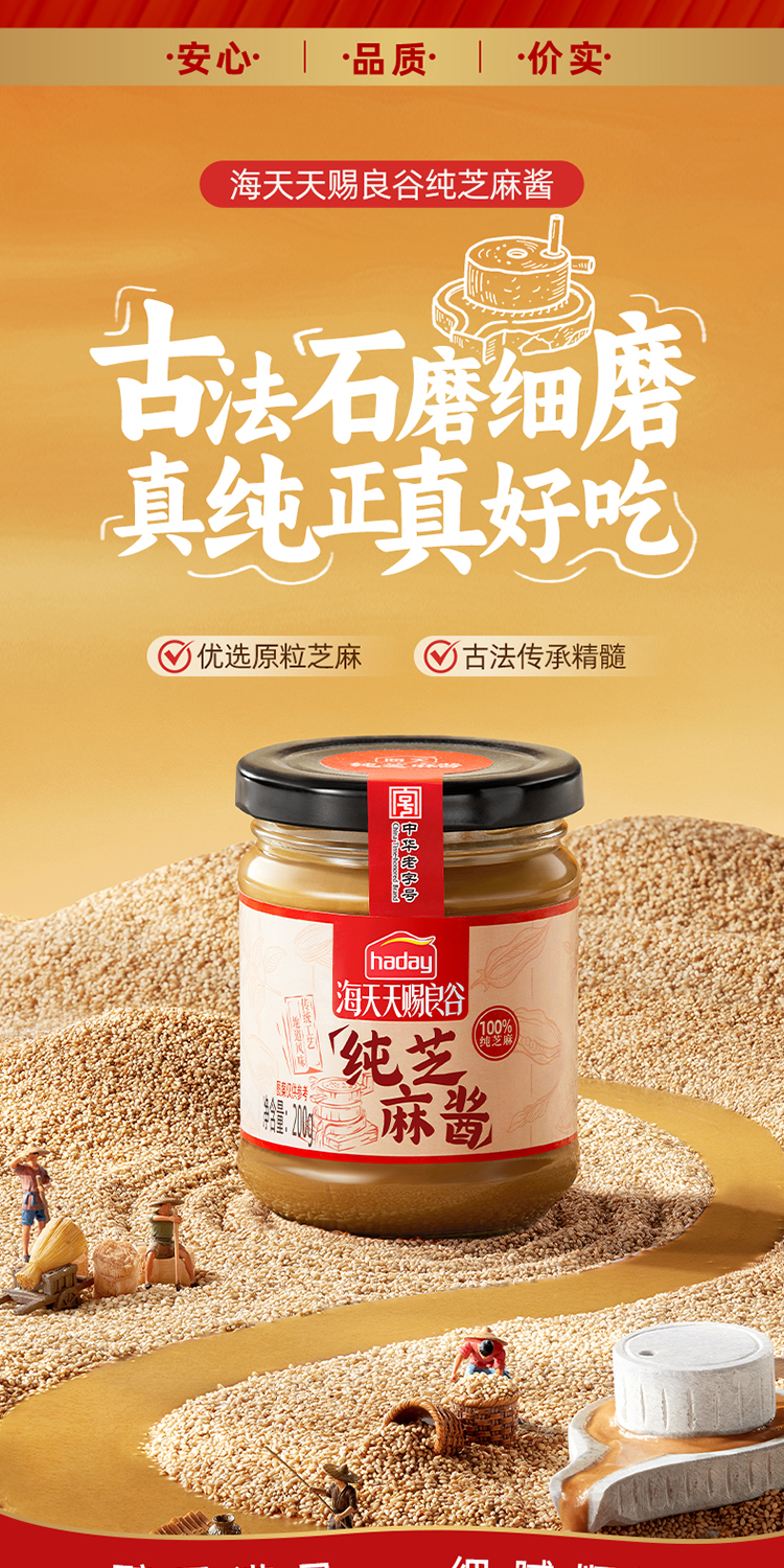 海天天赐良谷纯芝麻酱200g 古法石磨细磨