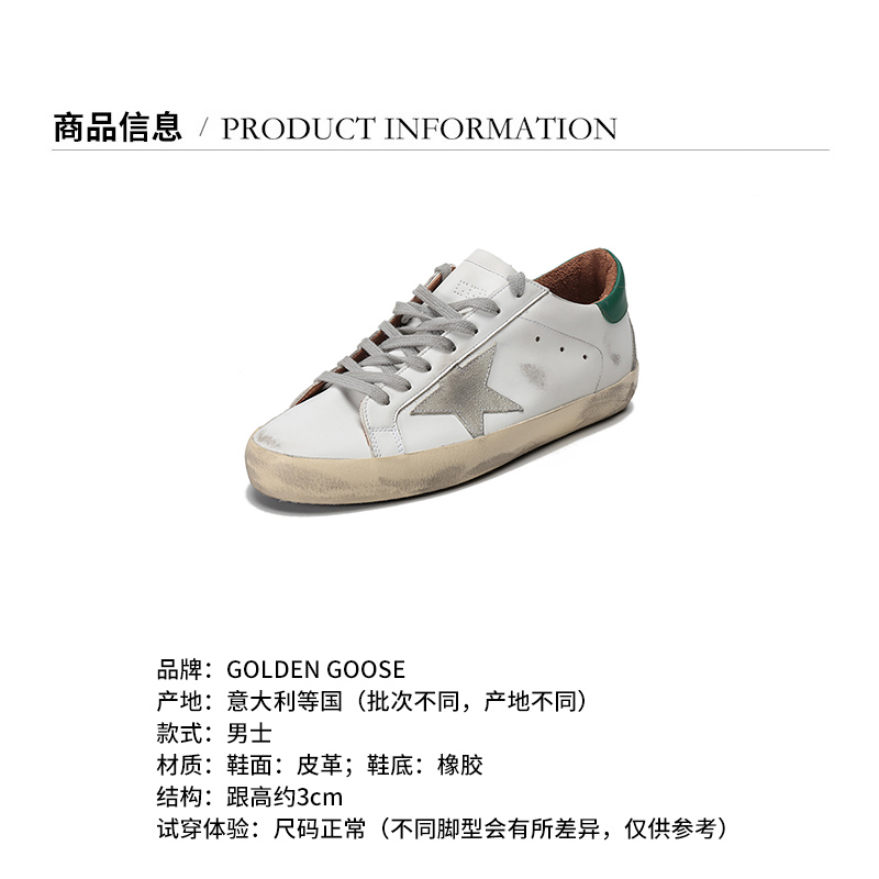 GOLDEN GOOSE DELUXE BRAND/黄金鹅【22春夏新款】男士皮革Super-Star系带休闲鞋运动鞋板鞋脏脏鞋星星绿尾 GMF00102 F002180