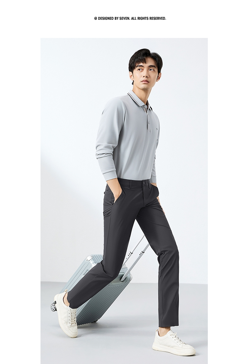【含铜氨纤维】柒牌男士休闲裤夏季新款细纹肌理轻薄舒适商务长裤128H73650