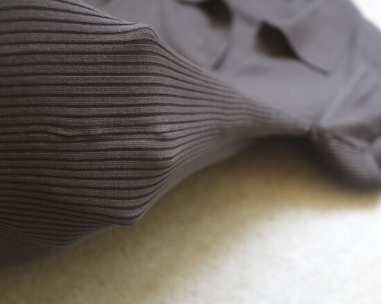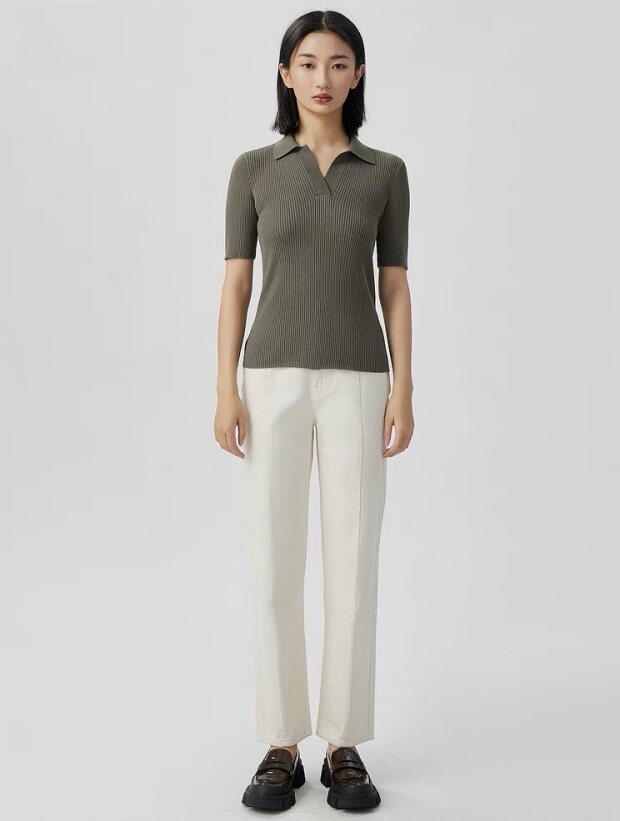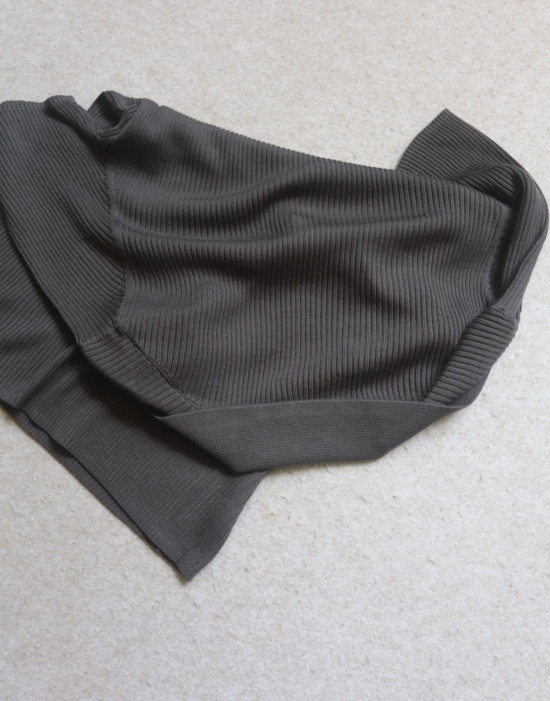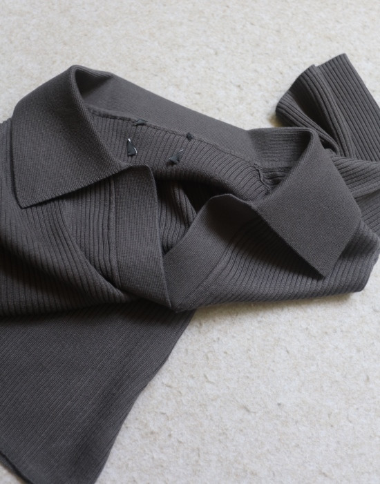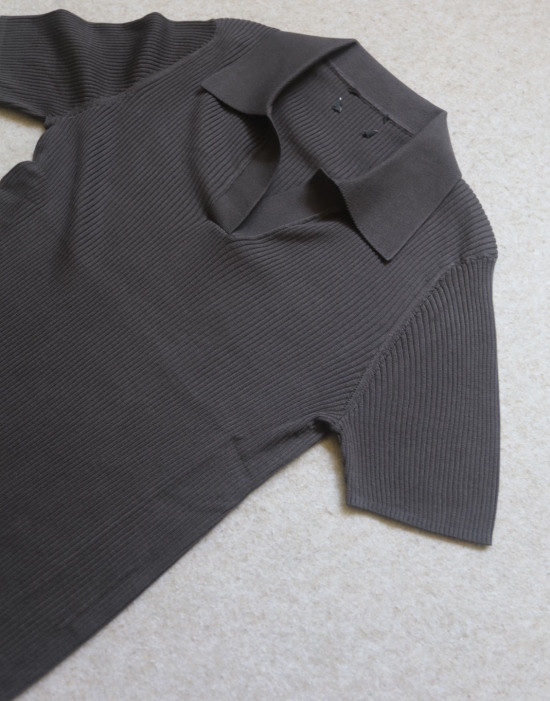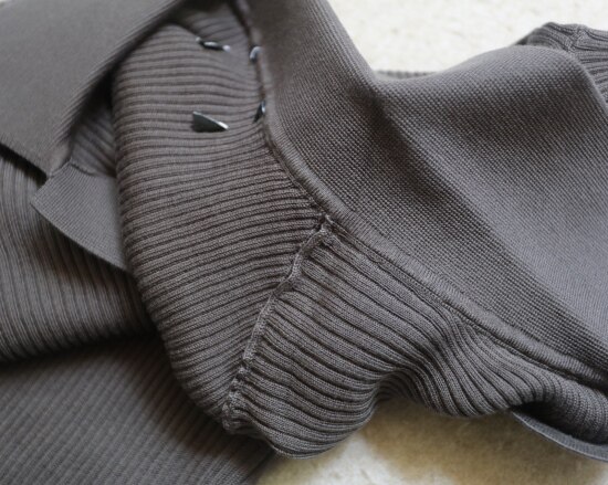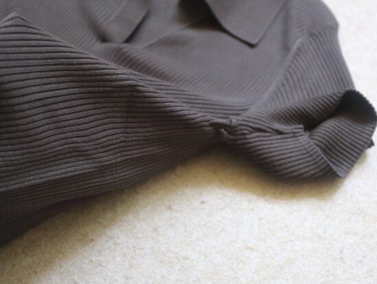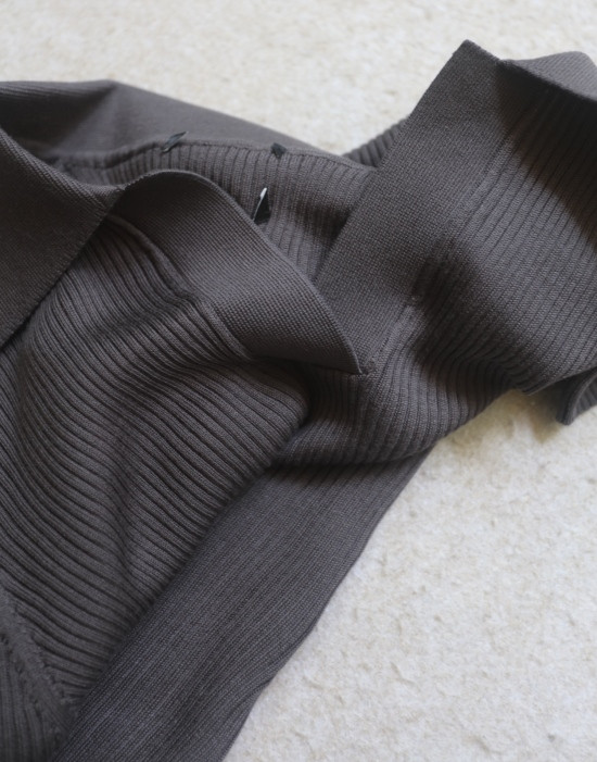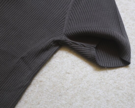 非常典型的针织衫 整体衣身 是80高纱支 采用竖坑条的织法