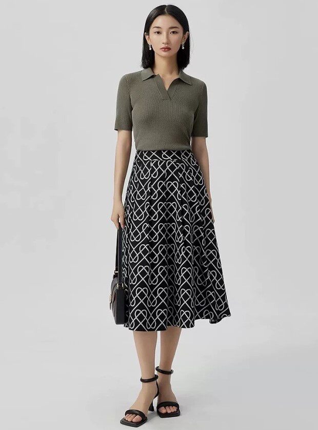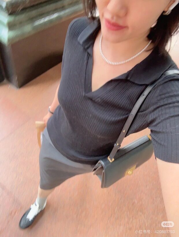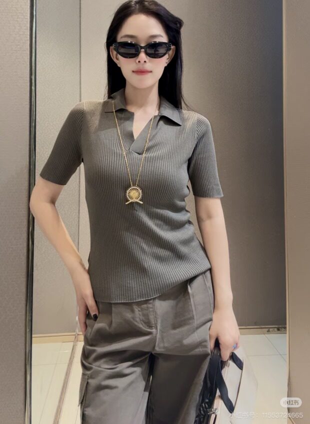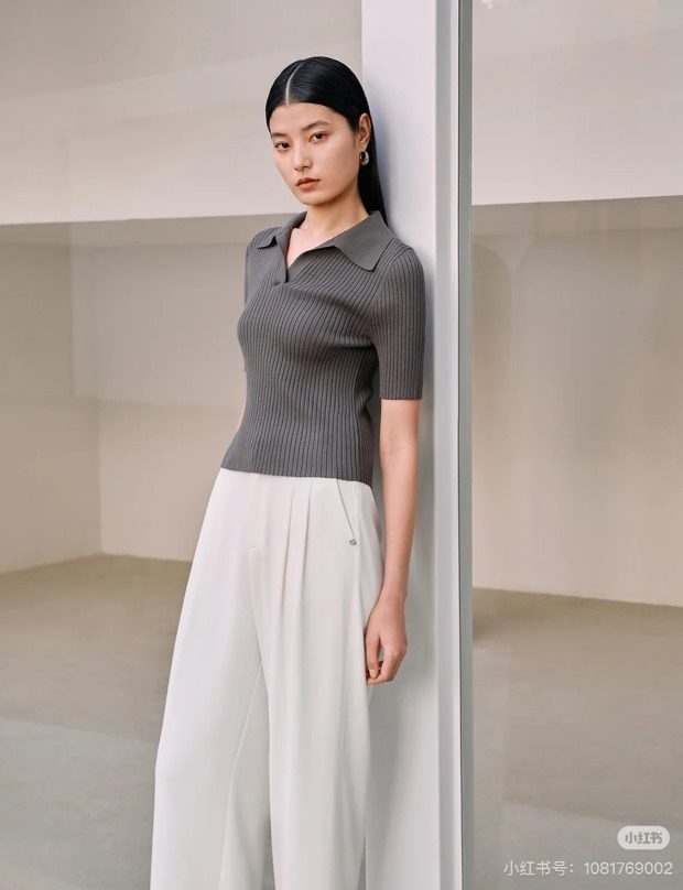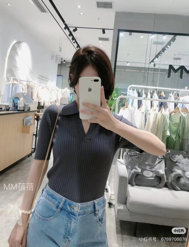 翻领式的小V开 知性中的小休闲感 比圆领的更显脖颈 哈~