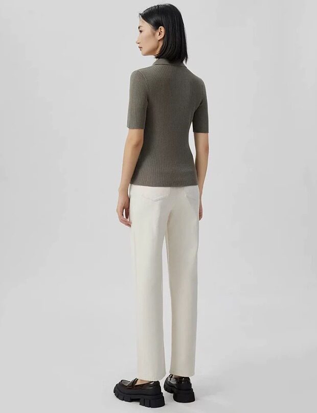 领口位置 是更细密的一体式针织 能增加整体的层次感 不易变形 更耐穿洗