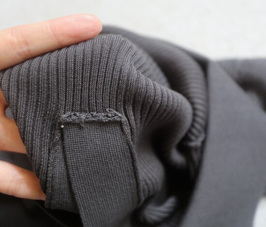 袖口和底边 上下针收边 隐隐的一条小边 增加边缘的牢固度