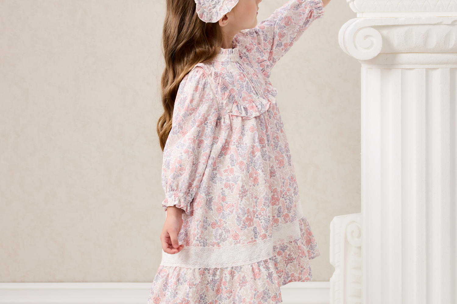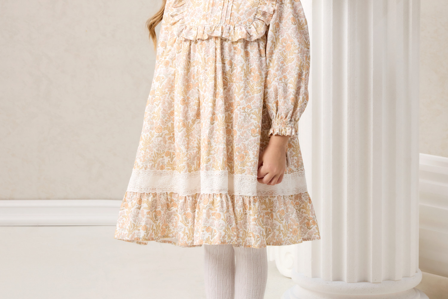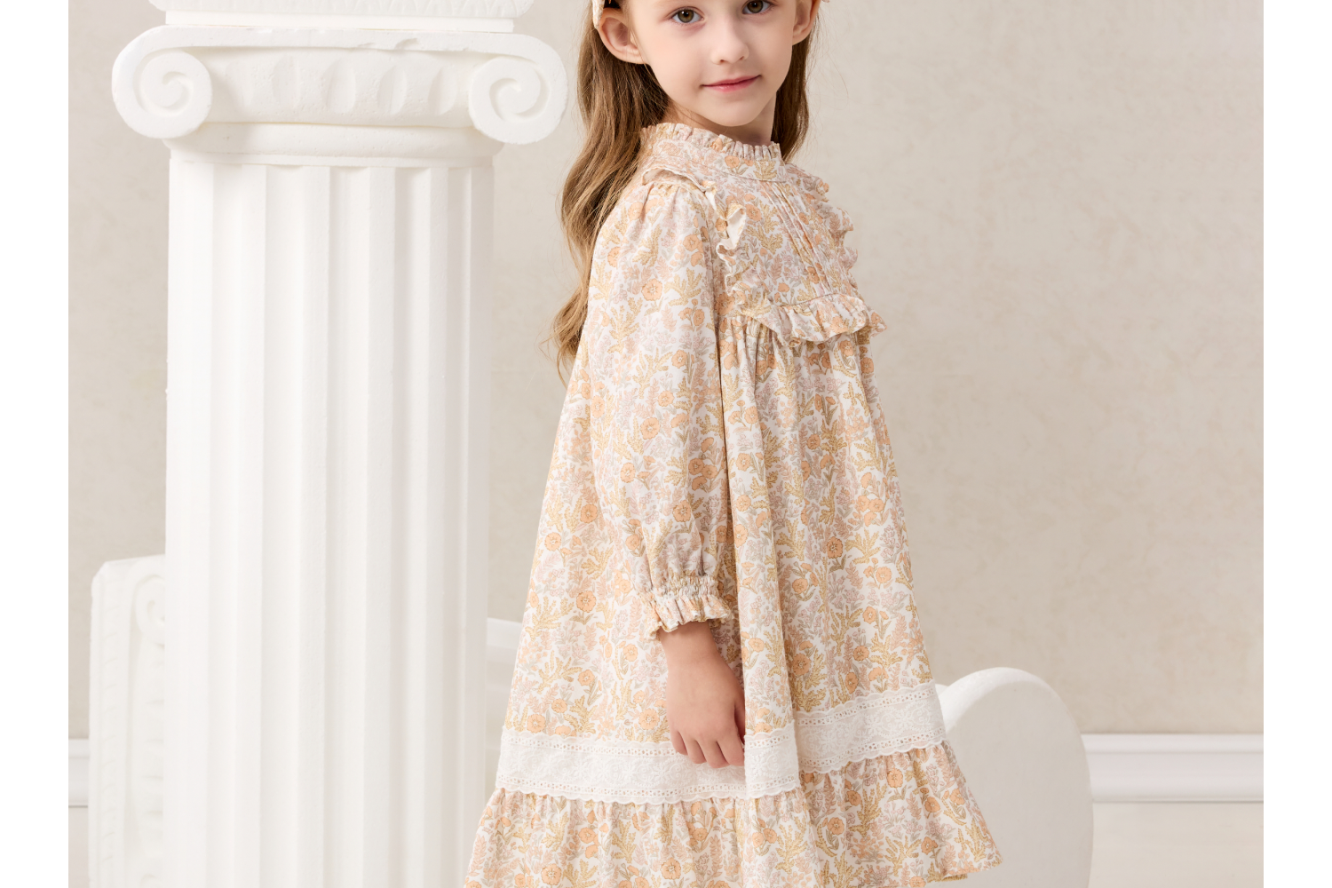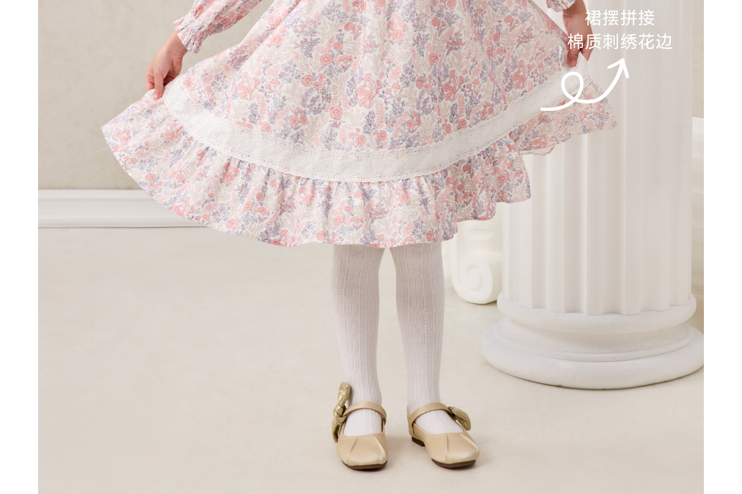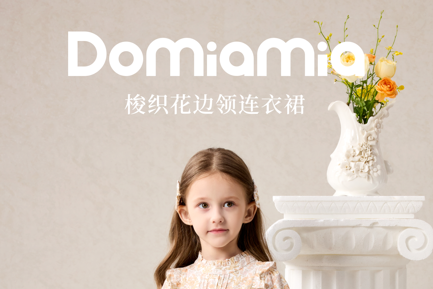 Domiamia梭织长袖花边领连衣裙