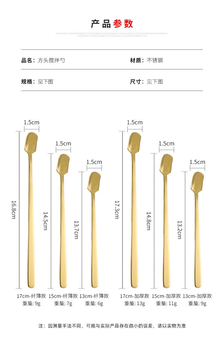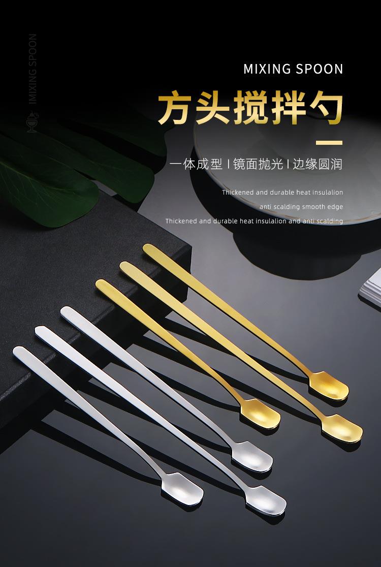 不锈钢方头勺金色长柄咖啡搅拌勺创意马克杯勺子甜品小勺子取茶勺