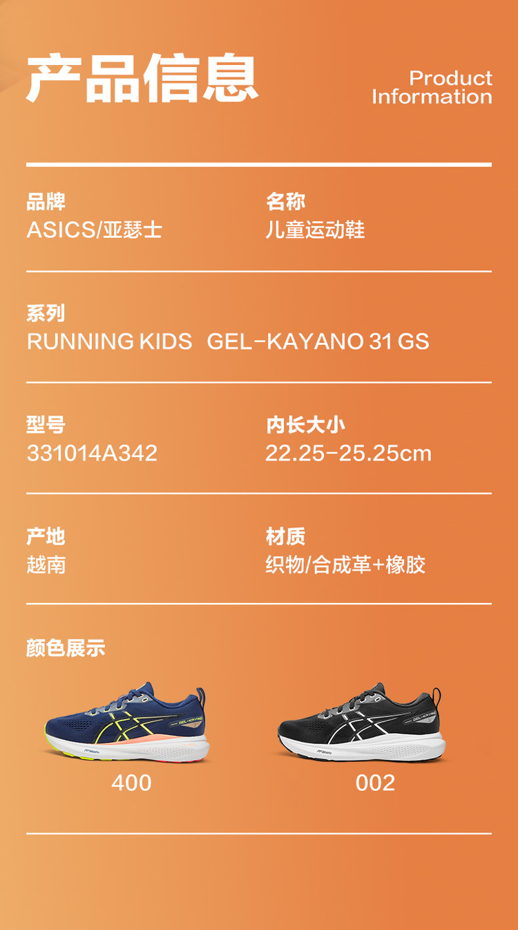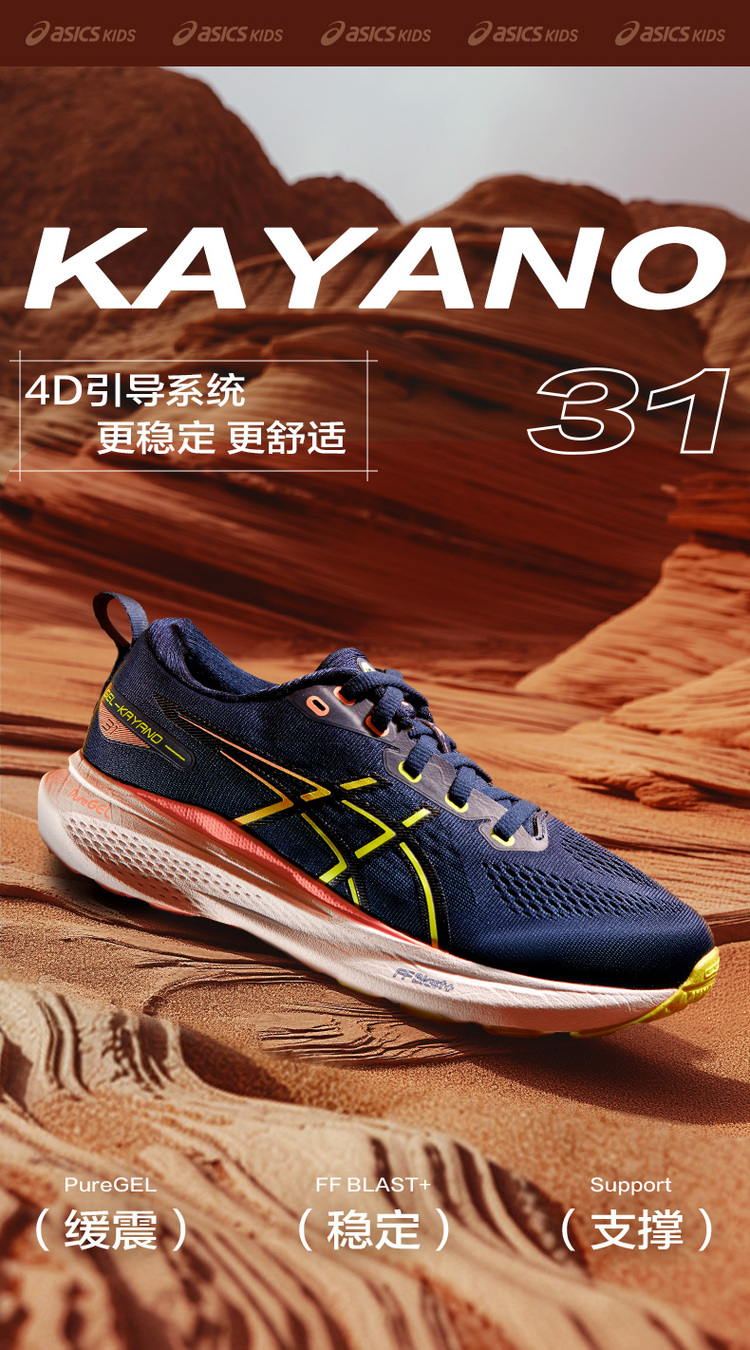 ASICS亚瑟士童鞋2024新稳定支撑跑鞋缓震轻量运动鞋GEL-KAYANO 31