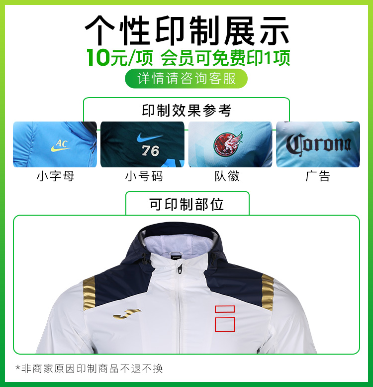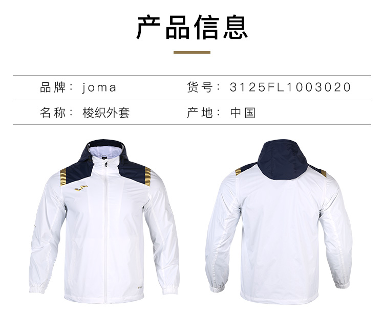 JOMA/霍马 白色梭织足球运动连帽拉链外套成人男3125FL1003020