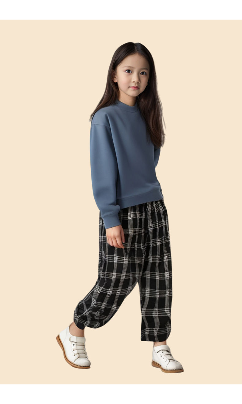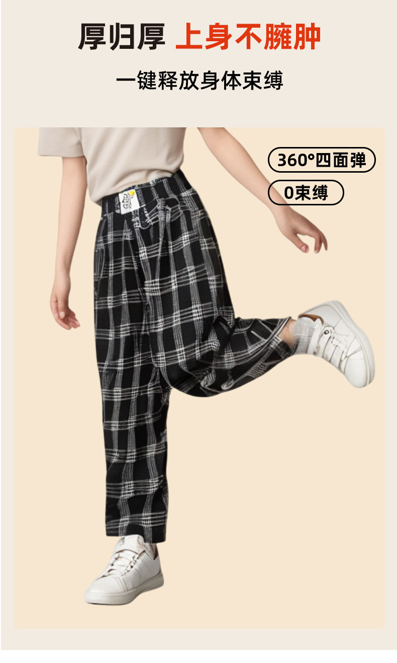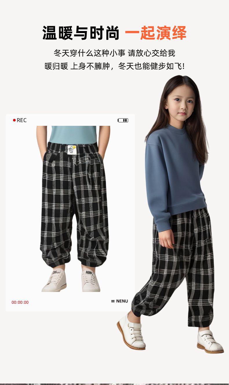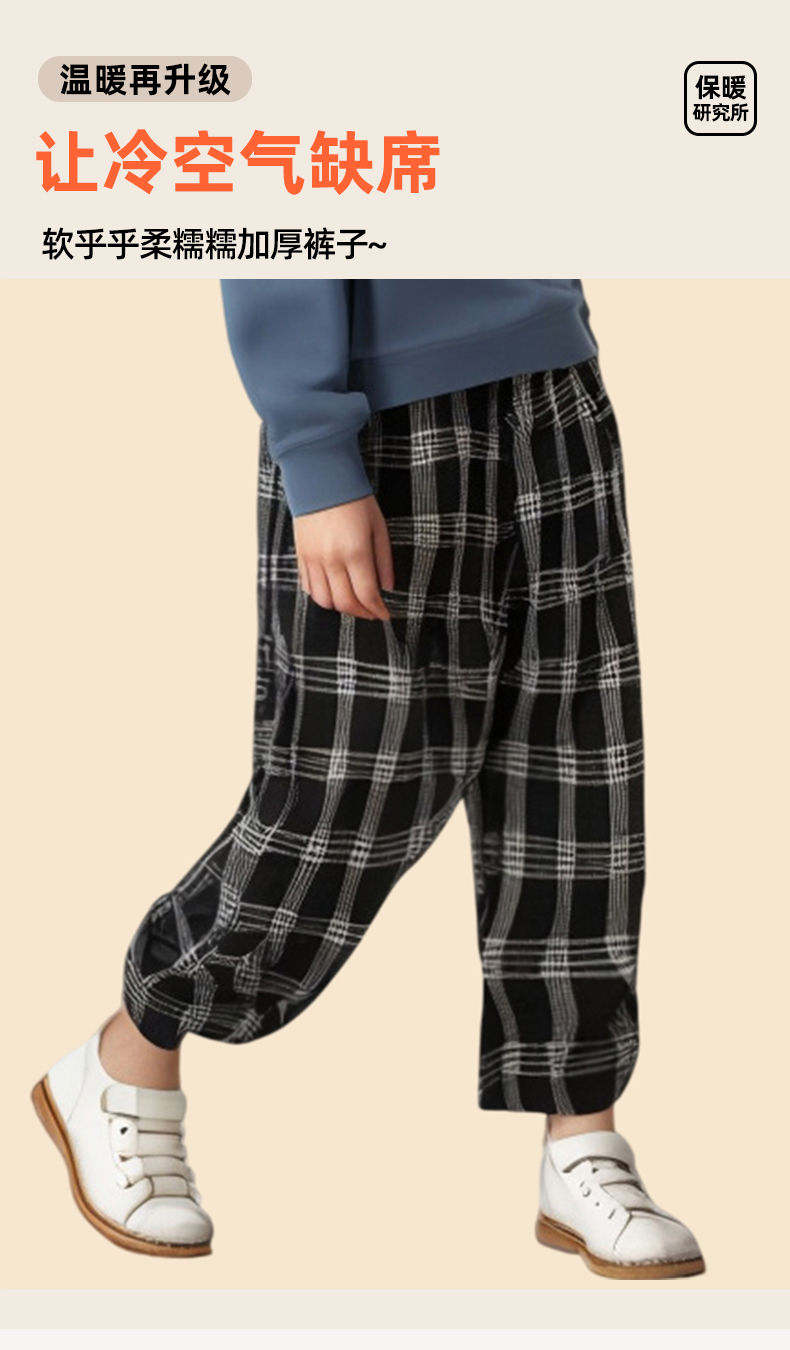 迪士尼儿童裤子加绒加厚冬季女童卫裤一体绒男童保暖裤外穿格子裤