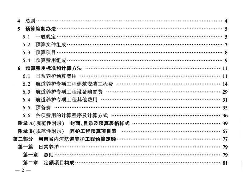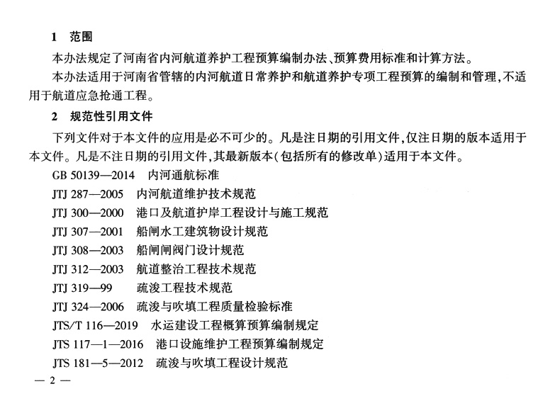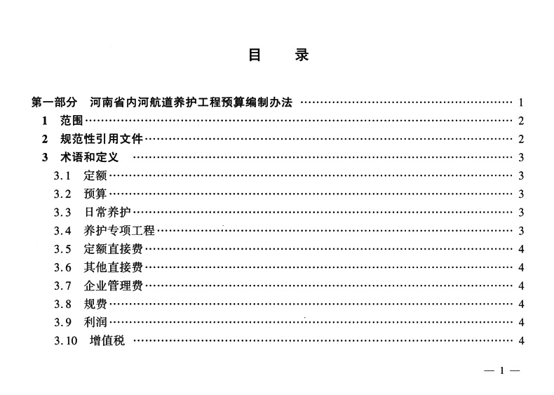 河南省内河航道养护工程预算编制办法及定额