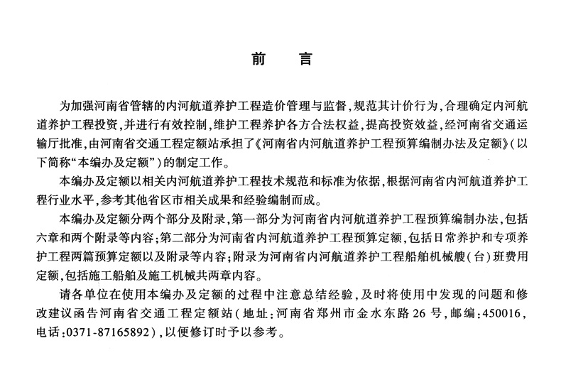 书名:河南省内河航道养护工程预算编制办法及定额