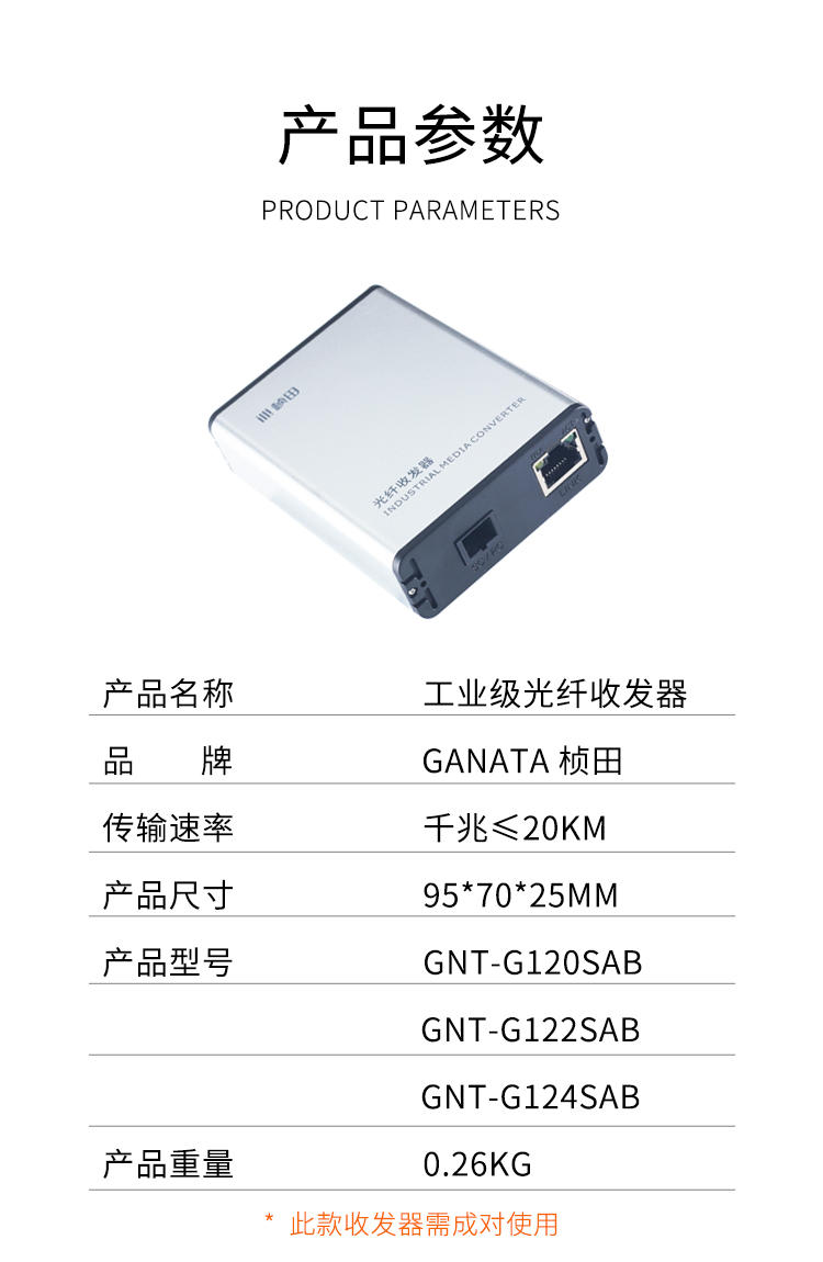 1对1千兆铝合金工业级光纤收发器G120SAB/G122SAB