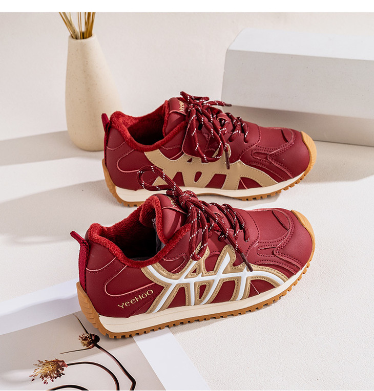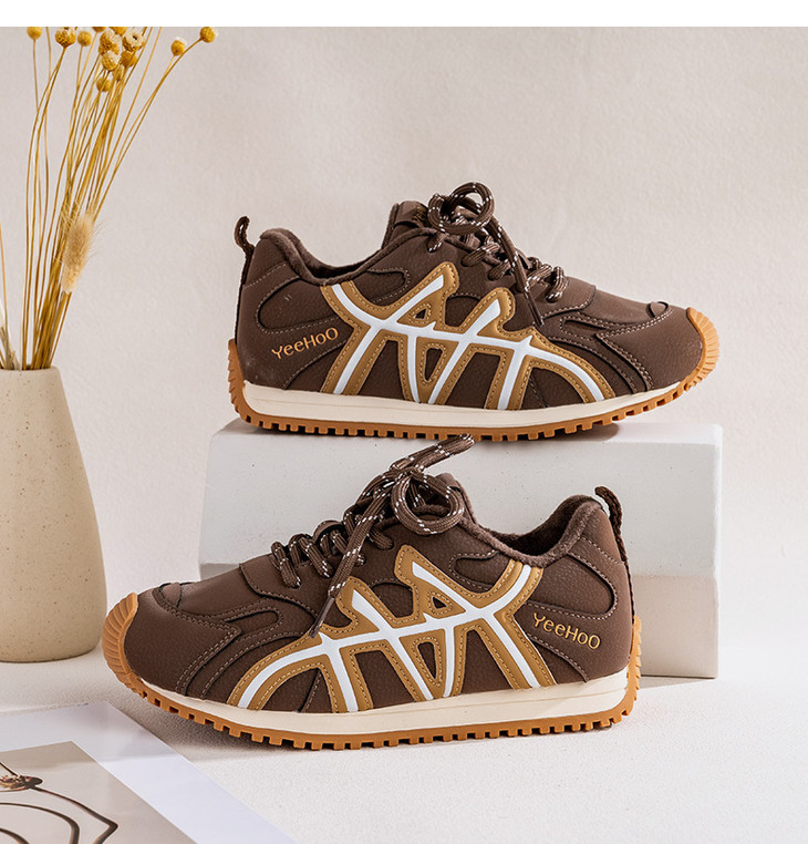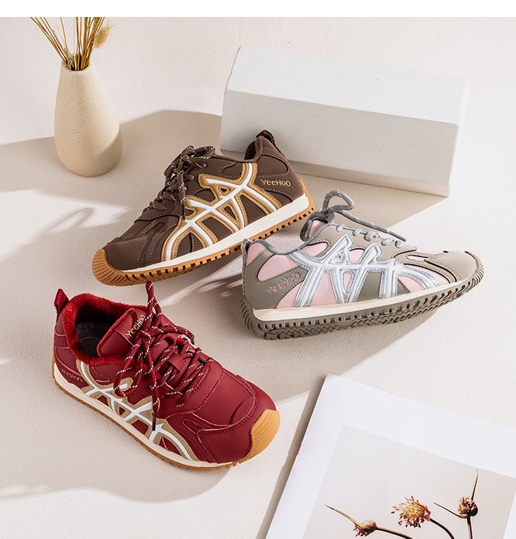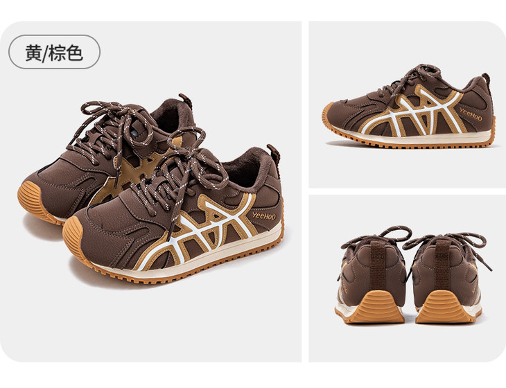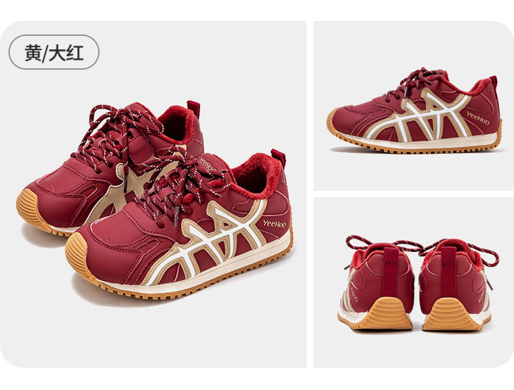 英氏YeeHo0童鞋冬季魔术贴加绒软底舒适运动鞋YHYLF2541805 货号:YHYLF2541805 颜色:黄大红、灰粉色、黄棕色 尺码:31-38 材质:鞋面 合成革;鞋底 橡胶 谁懂啊!英氏这款复古潮酷户外运动鞋,功能性与颜值直接拉满,老母亲终于不用在 “实用” 和 “好看” 之间二选一了! 三款配色都是潮流又好看,男女宝通穿还巨耐脏。鞋侧线条设计恰到好处,没有花哨装饰却自带高级感, 鞋底厚度刚好,既有踩在云朵上的缓震感,又不会笨重得像踩砖块,娃可以从上午十点疯玩到下午四点,回家脱鞋时也不会脚累。 关键是它从不是 “样子货”,足弓支撑和后跟稳定设计能帮娃养成正确步态,学步期宝宝穿也超安心。 鞋子柔软又轻便,三分之一处易弯折,贴合宝宝娇嫩脚骨,让宝宝健康走路脚丫健康发育~~