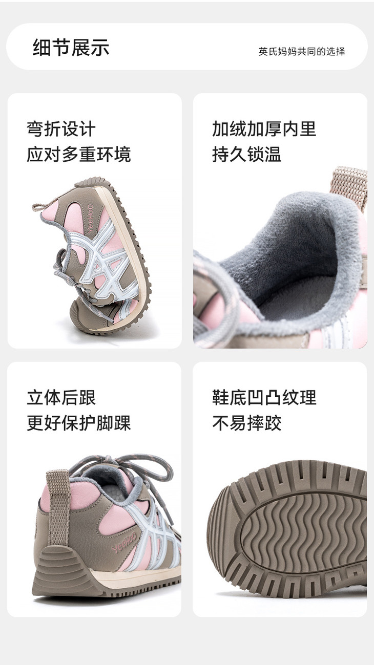 【英氏YeeHo0童鞋冬季魔术贴加绒软底舒适运动鞋YHYLF2541805】🌵每款颜色搭配活泼亮眼,🌼流畅又动感,还有撞色拼接等设计 💥能轻松打造出潮娃造型,让孩子穿上后充满时尚感