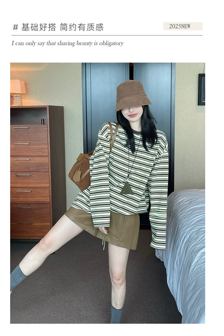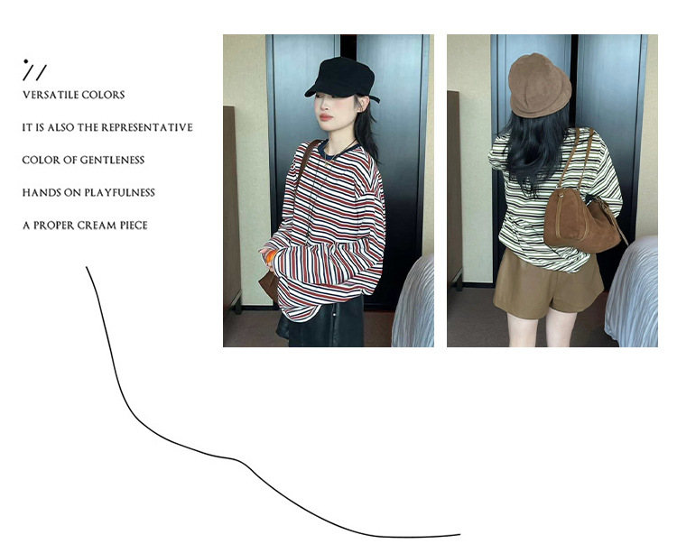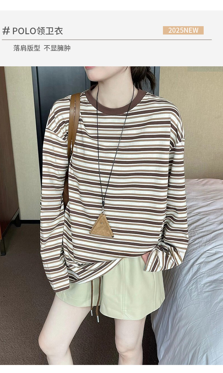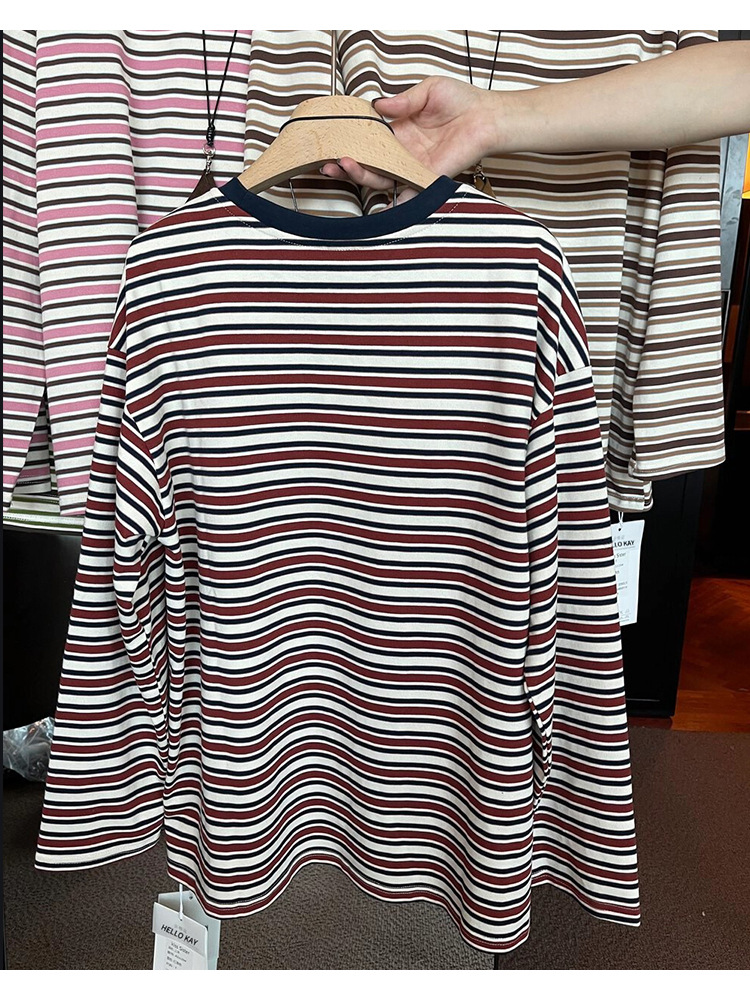 重磅水洗纯棉撞色条纹长袖T恤 早秋休闲宽松慵懒松弛感上衣