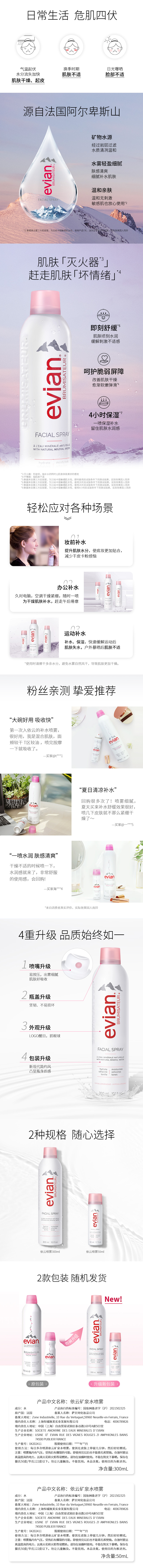 【YZ】Evian/依云法国化妆水矿泉喷雾爽肤水护肤水
