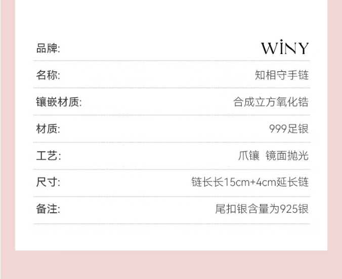 唯一(Winy)999足银手链女手镯女生日520情人节礼物送女朋友送老婆