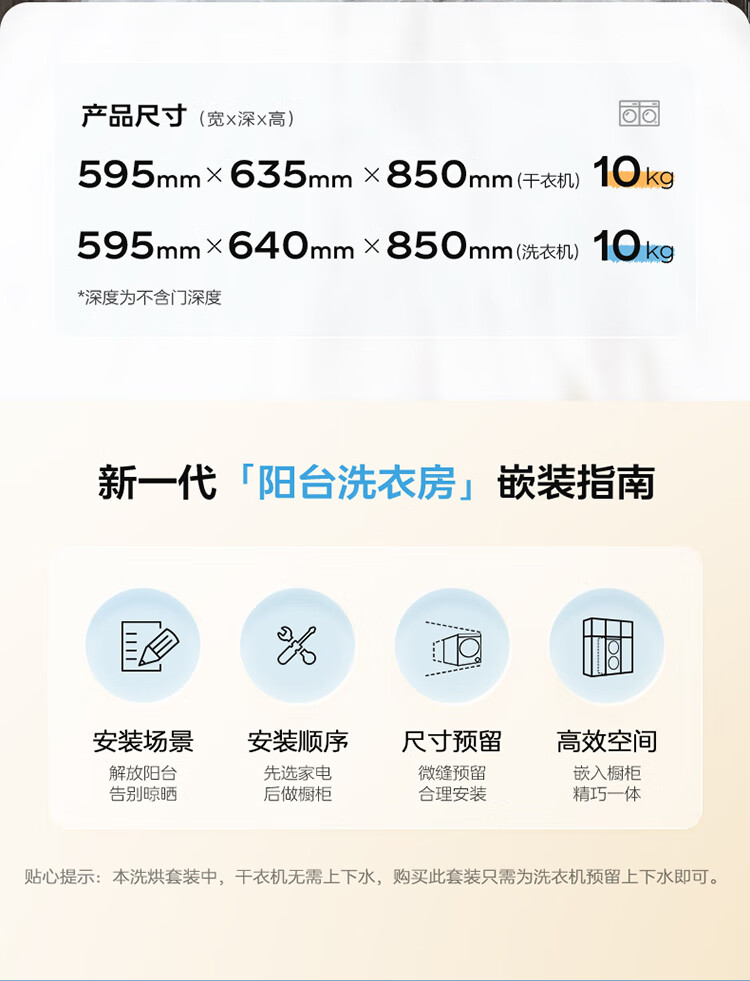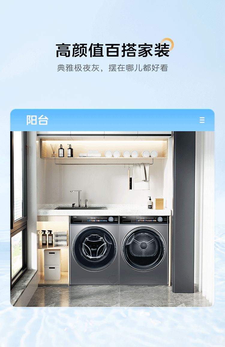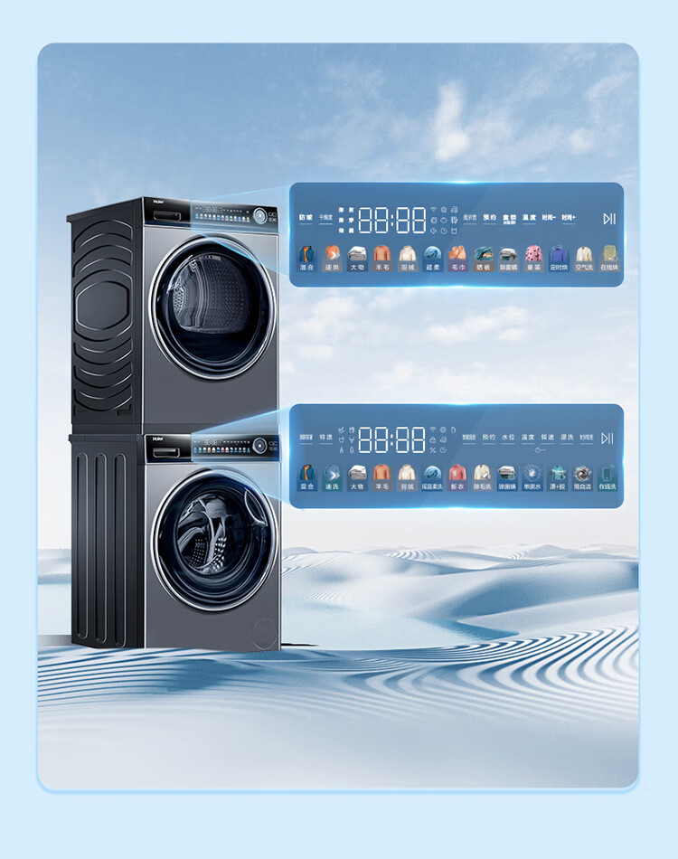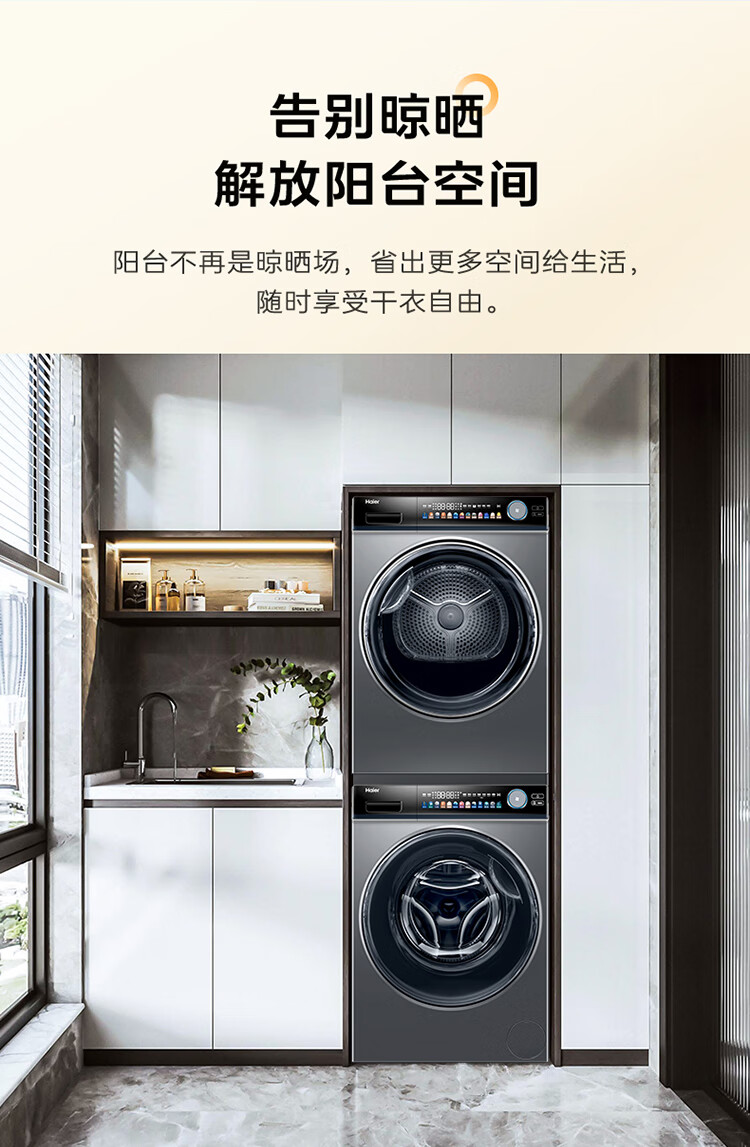 海尔晶彩洗烘套装 10Kg直驱智投滚筒洗衣机+空净热泵烘干机 双重除毛屑 EG100PRO81U1+EHG100181U1