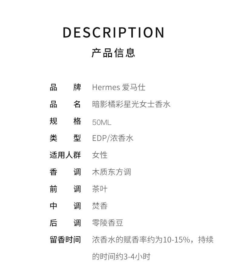 【预售 急单慎拍】HERMES爱马仕 暗影橘彩星光香水2020年新款 EDP 50ml