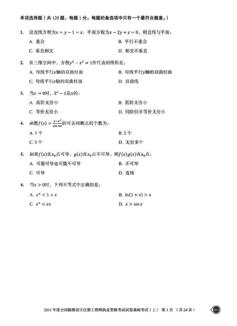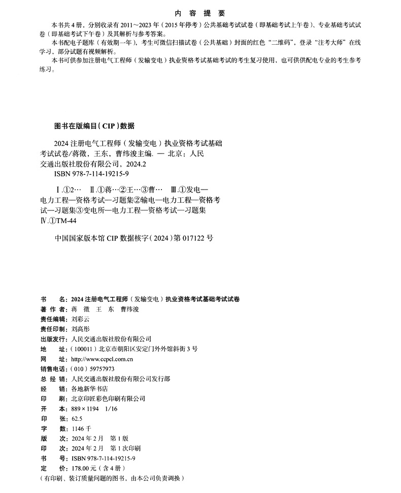 书名:2024注册电气工程师(发输变电)执业资格考试基础考试试卷