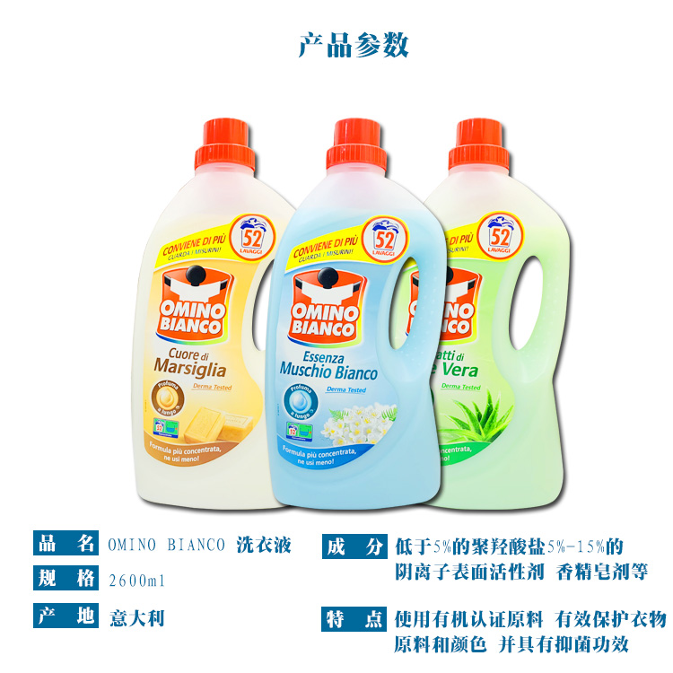 OC【中欧班列优选】ON 意大利洗衣液 原装进口奥米诺洗衣液浓缩温和低泡沫去渍2600ml/瓶