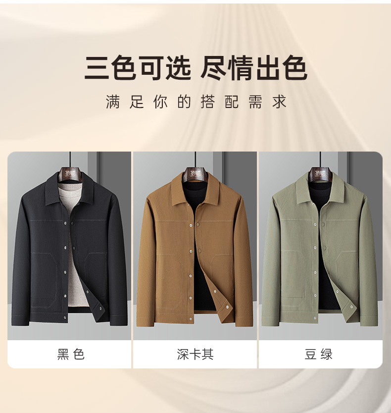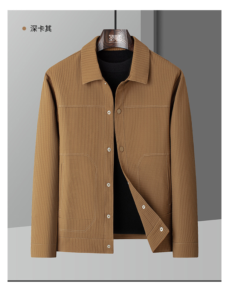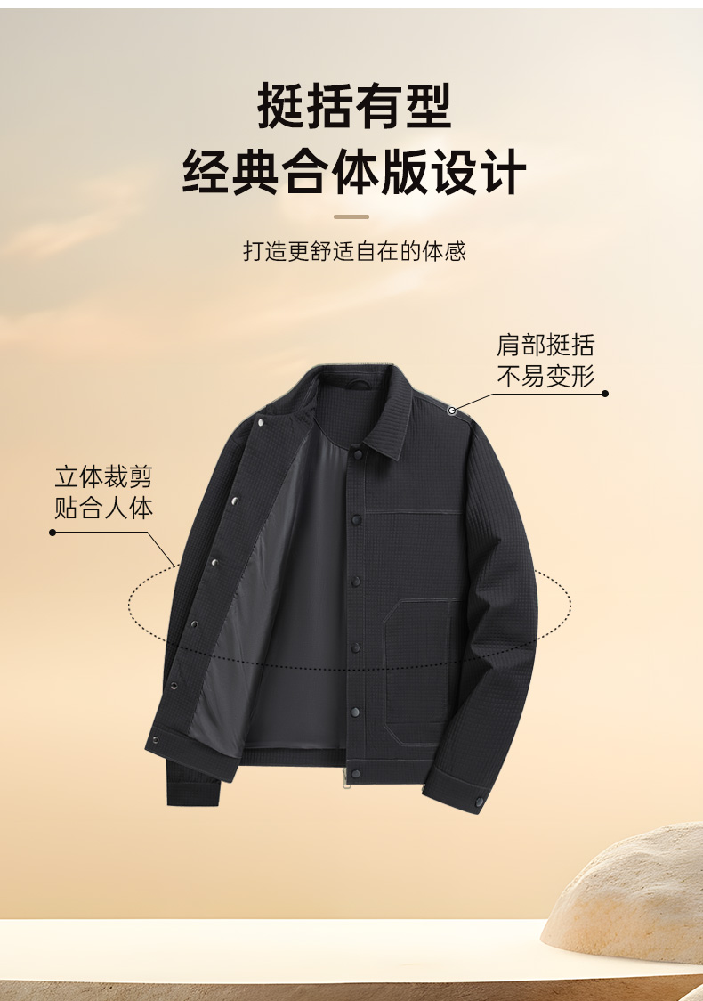 圣得西男士中青年翻领夹克外套立体提花简约质感日常2024秋季新款