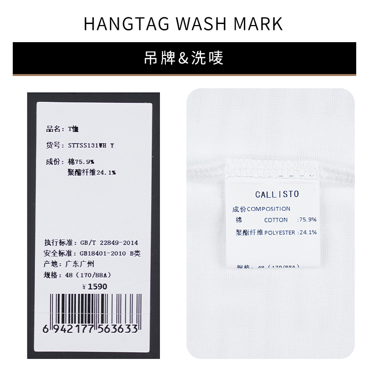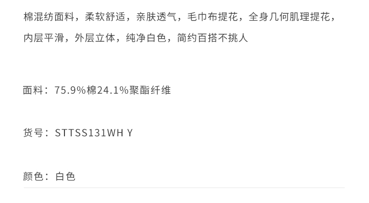 callisto白色棉混纺T恤短袖 STTSS131Y