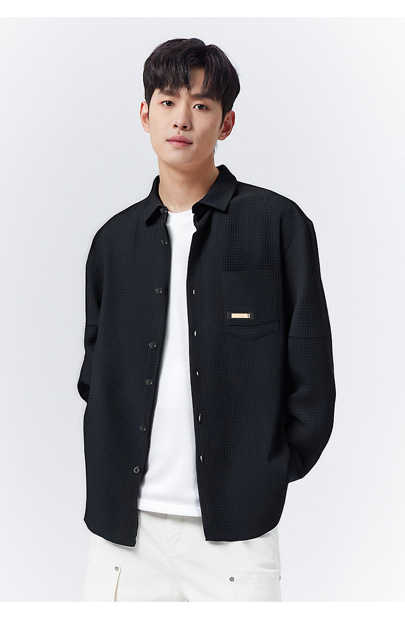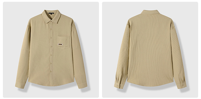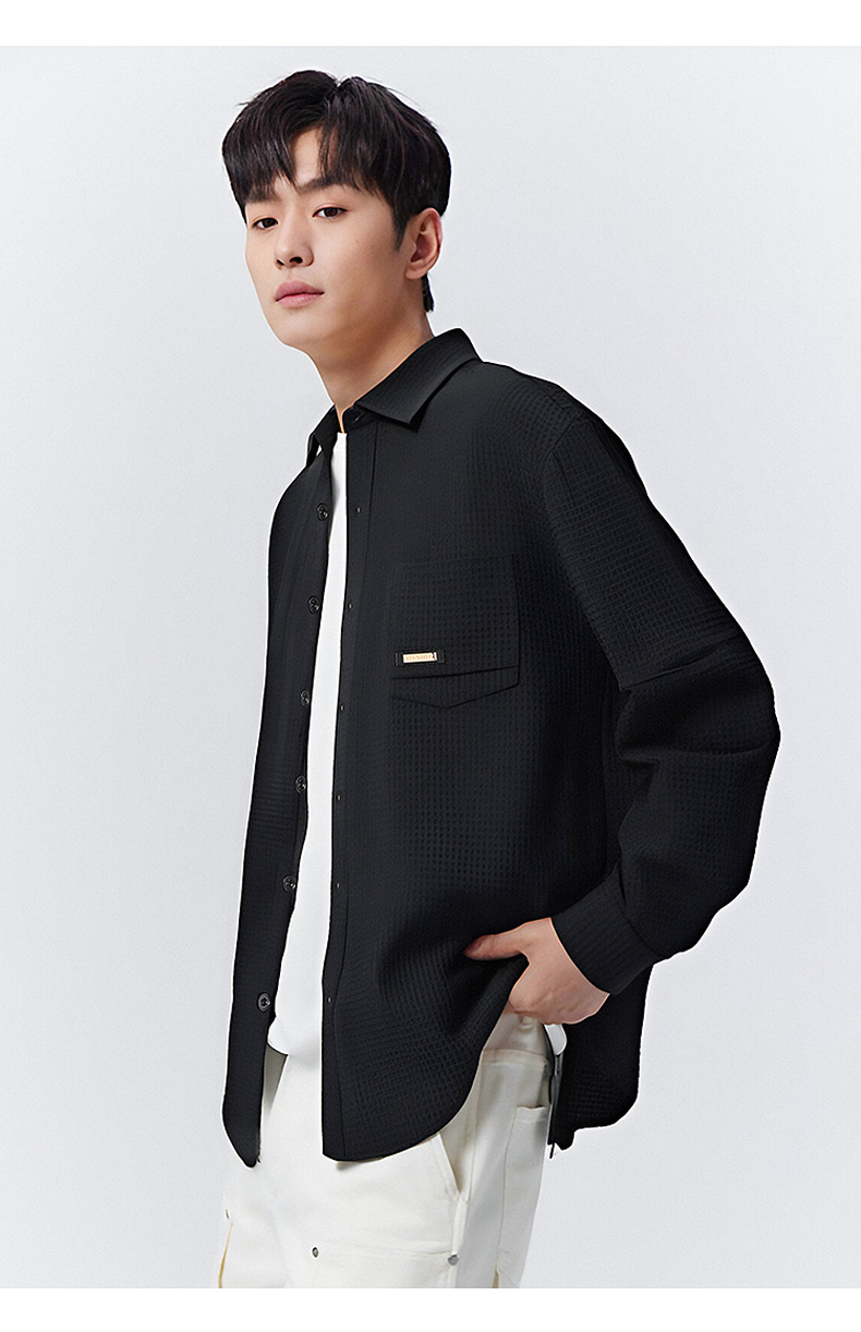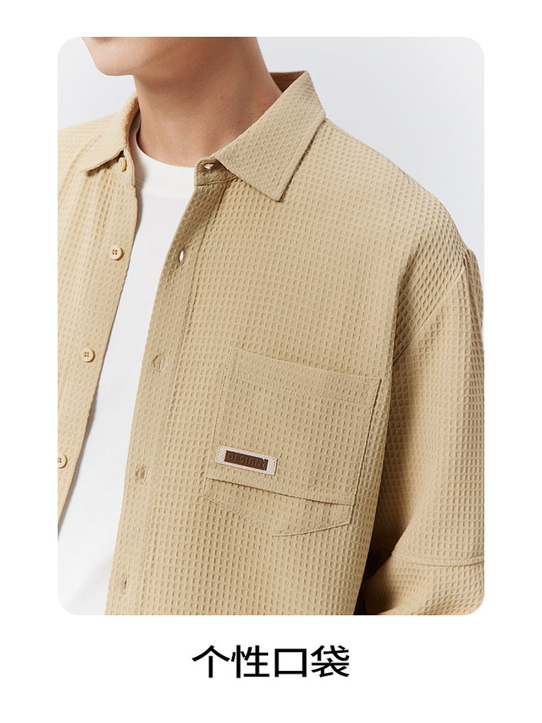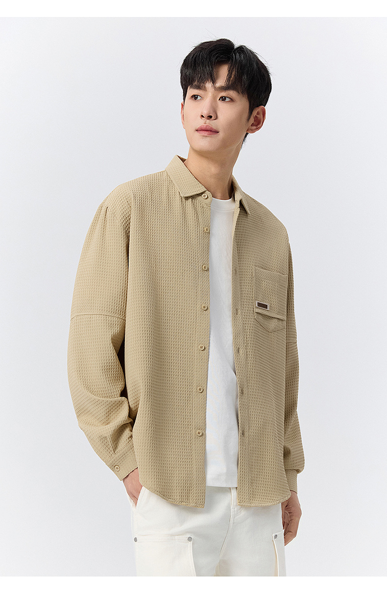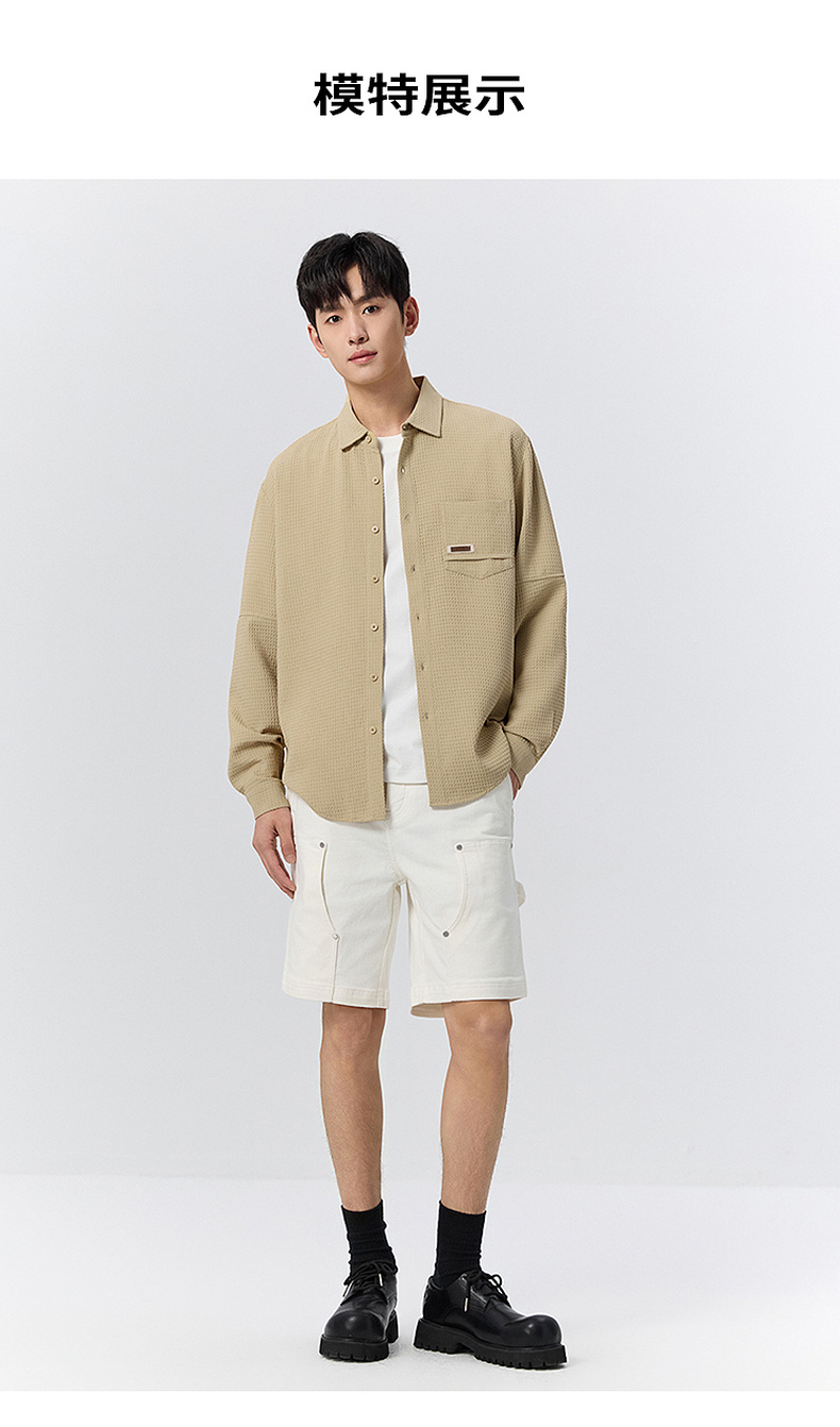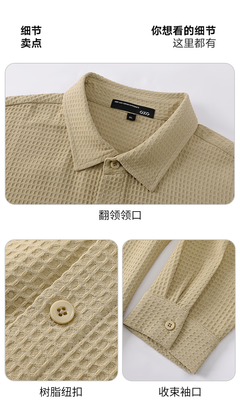 GXG男装【华夫格肌理】25春季简约翻领工装贴袋男式长袖休闲衬衫K&C