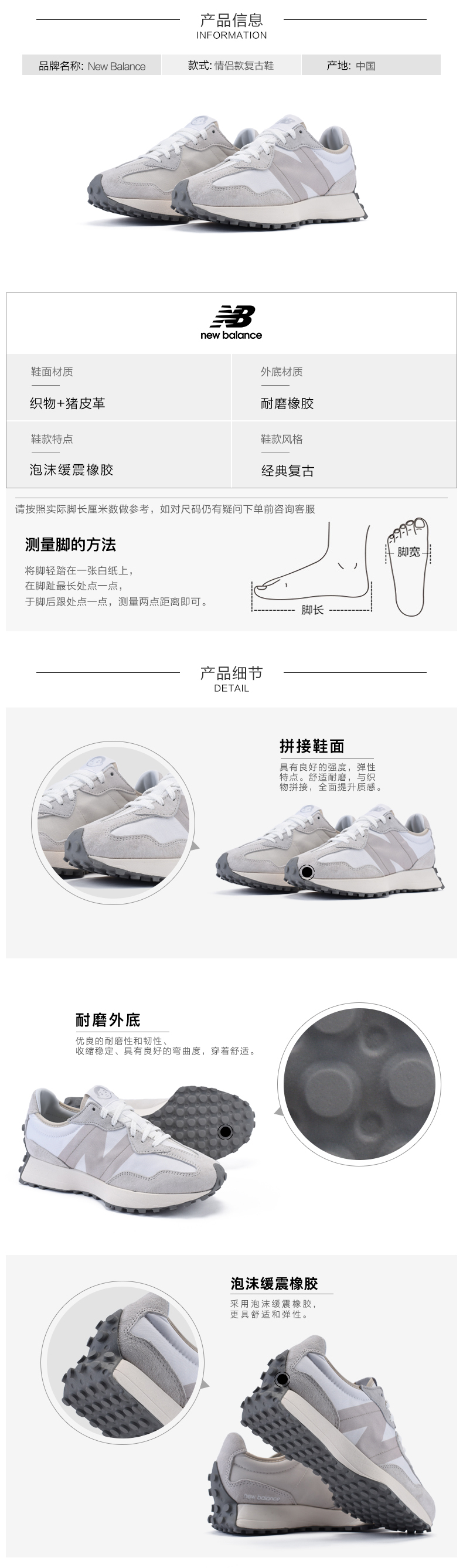 New Balance 327 新百伦生胶底男女运动网面跑步鞋
