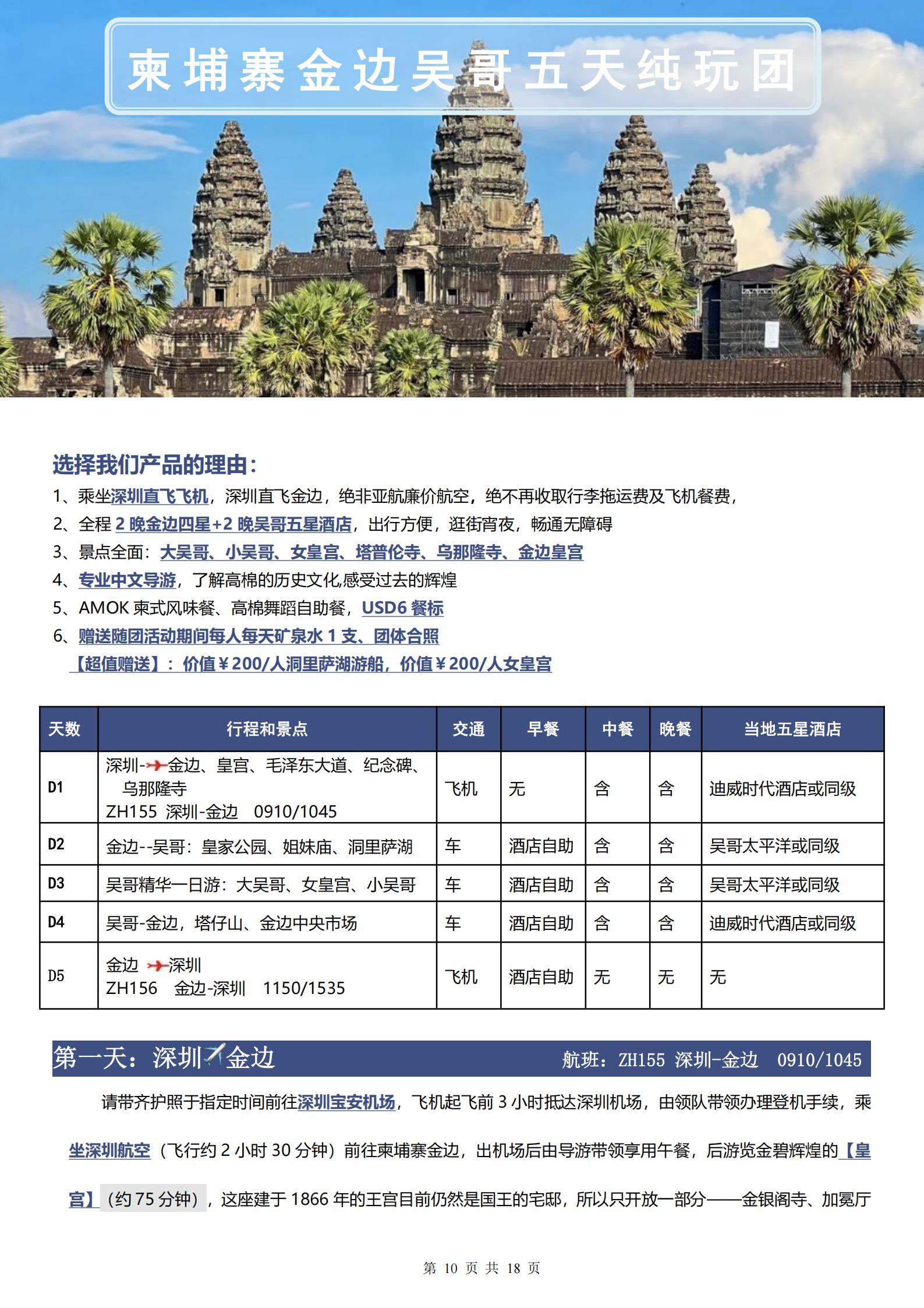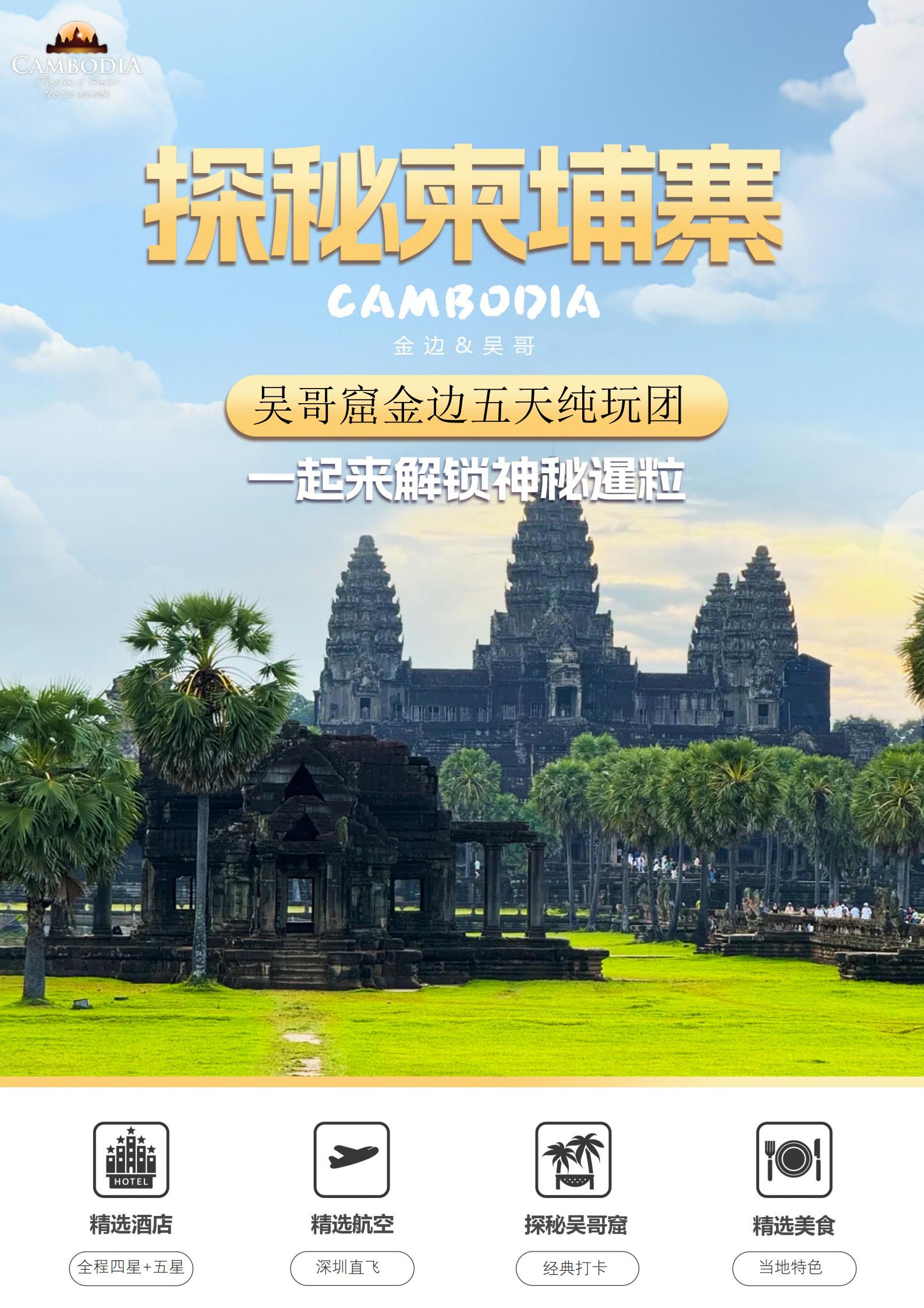 【五一】<柬埔寨金边+吴哥窟6天-深圳直飞往返>大吴哥、小吴哥、女皇宫、塔普伦寺、乌那隆寺、金边皇宫、洞里萨湖游船