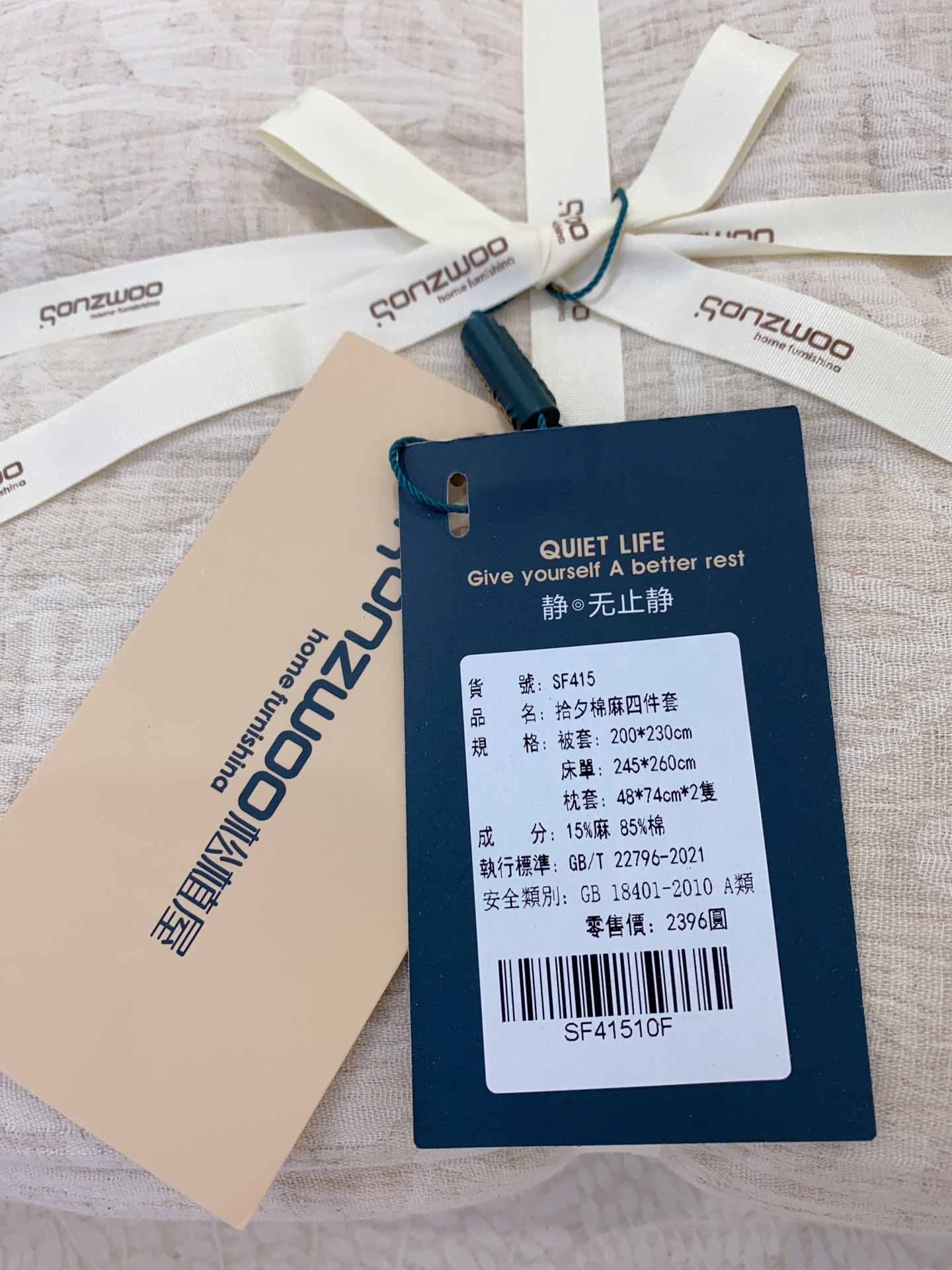 成份:85%长绒棉 + 15%亚麻 | 天然混纺,透气亲肤,吸湿排汗,抗静电不起球,敏感肌友好!