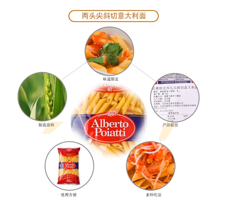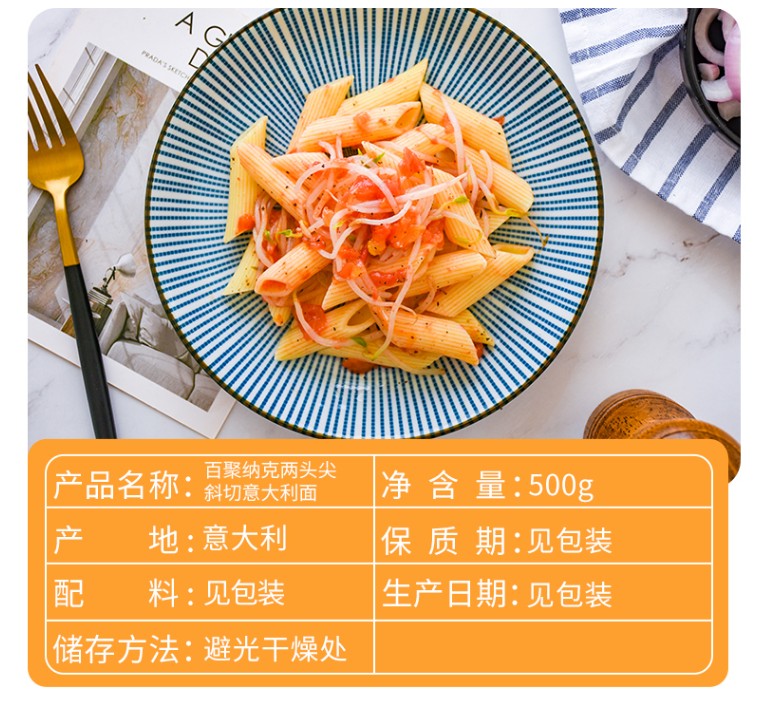 百聚纳克 两头尖斜切意大利面 500g 意面意粉 空心斜条意面