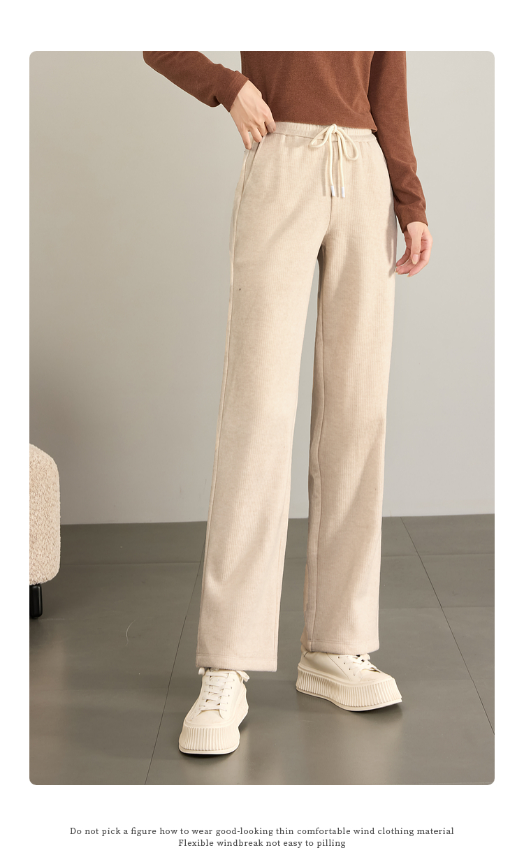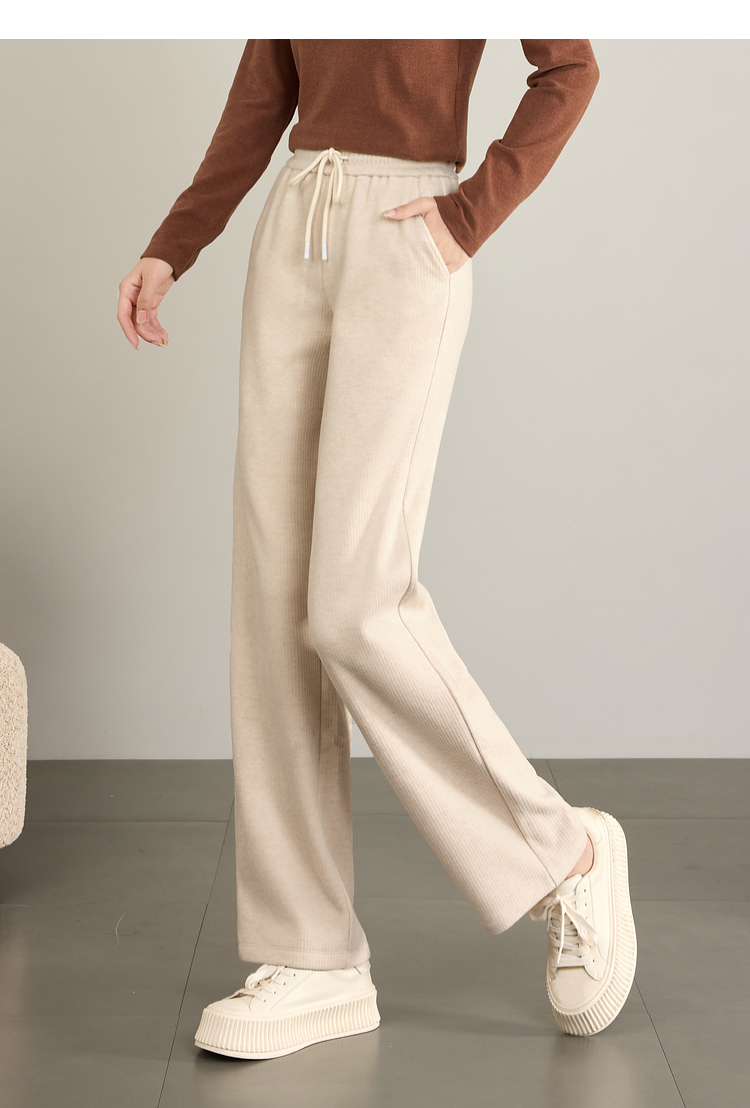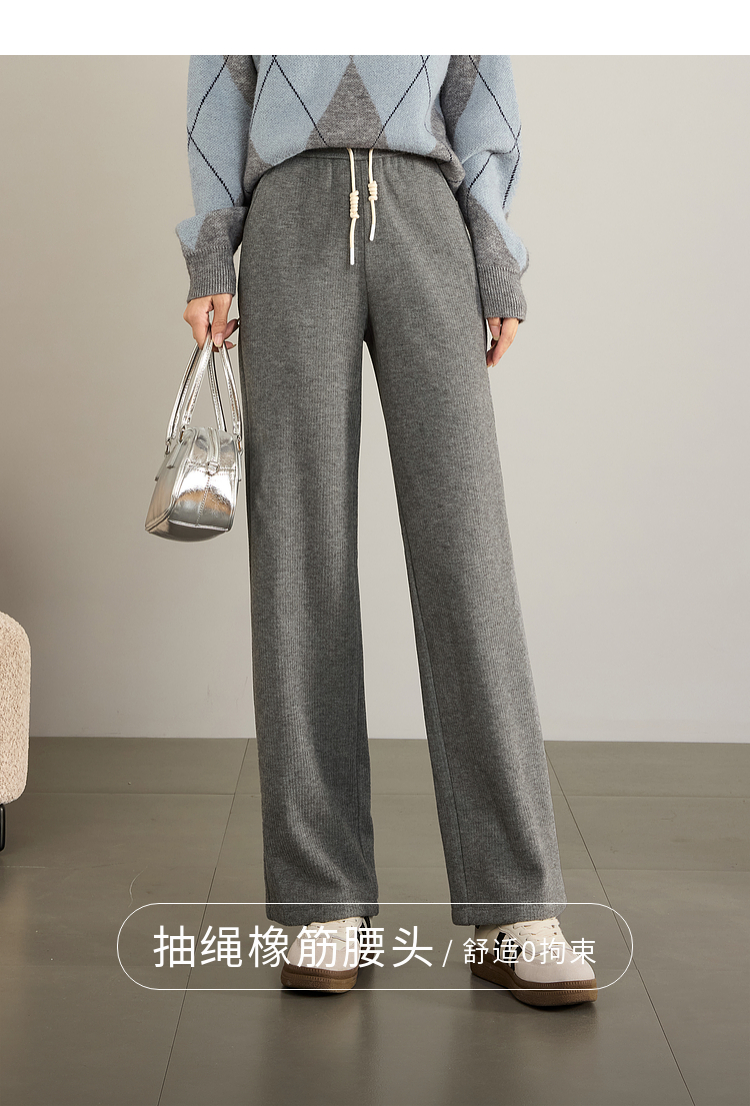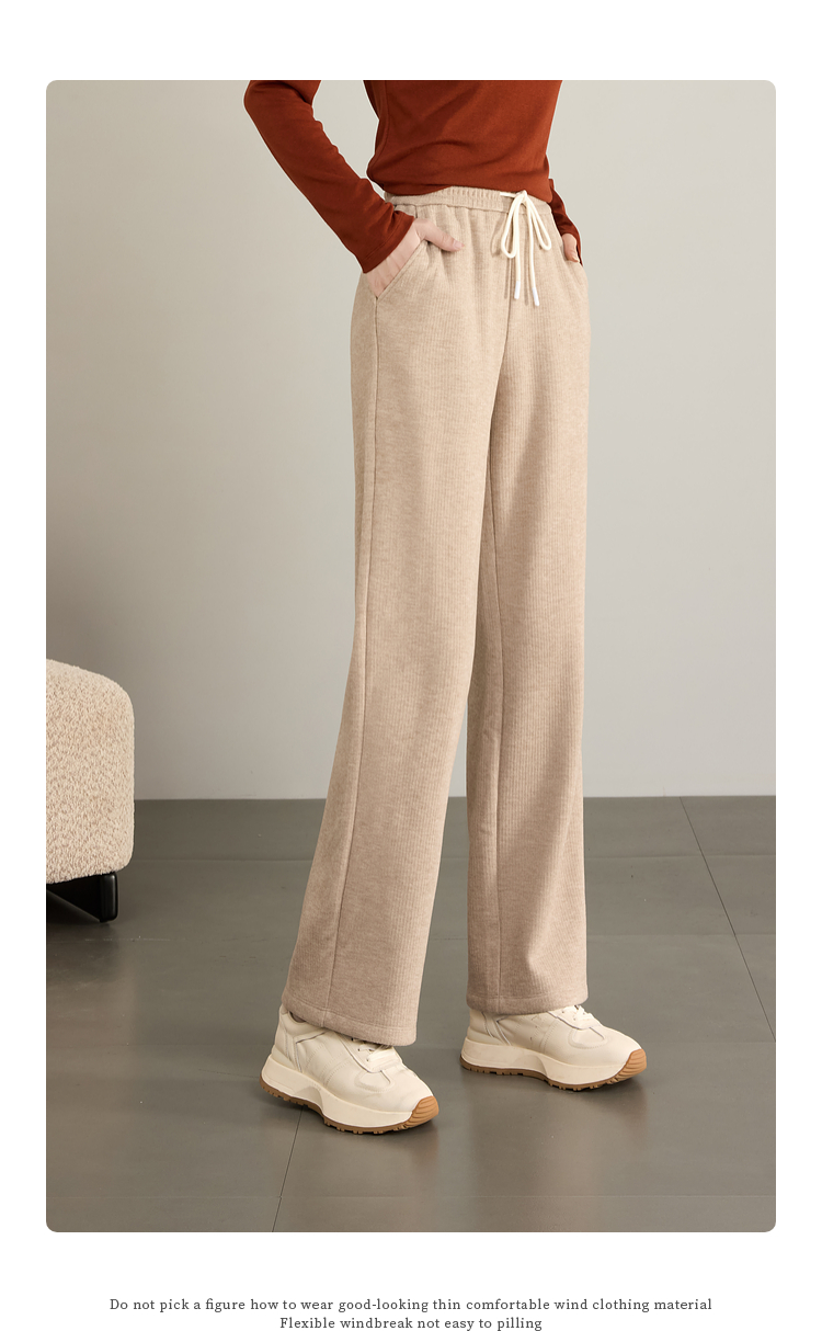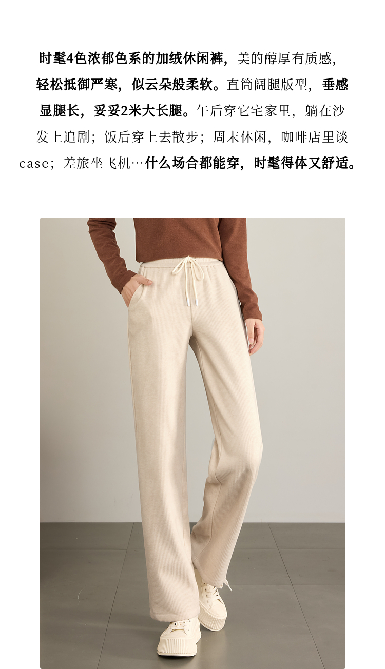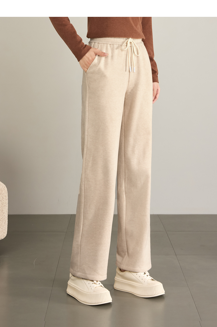 【年终特卖】熙世界肌理磨毛坑条糯米直筒裤秋冬加绒加厚休闲宽松阔腿长裤子