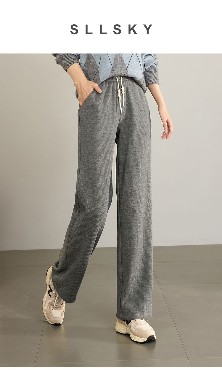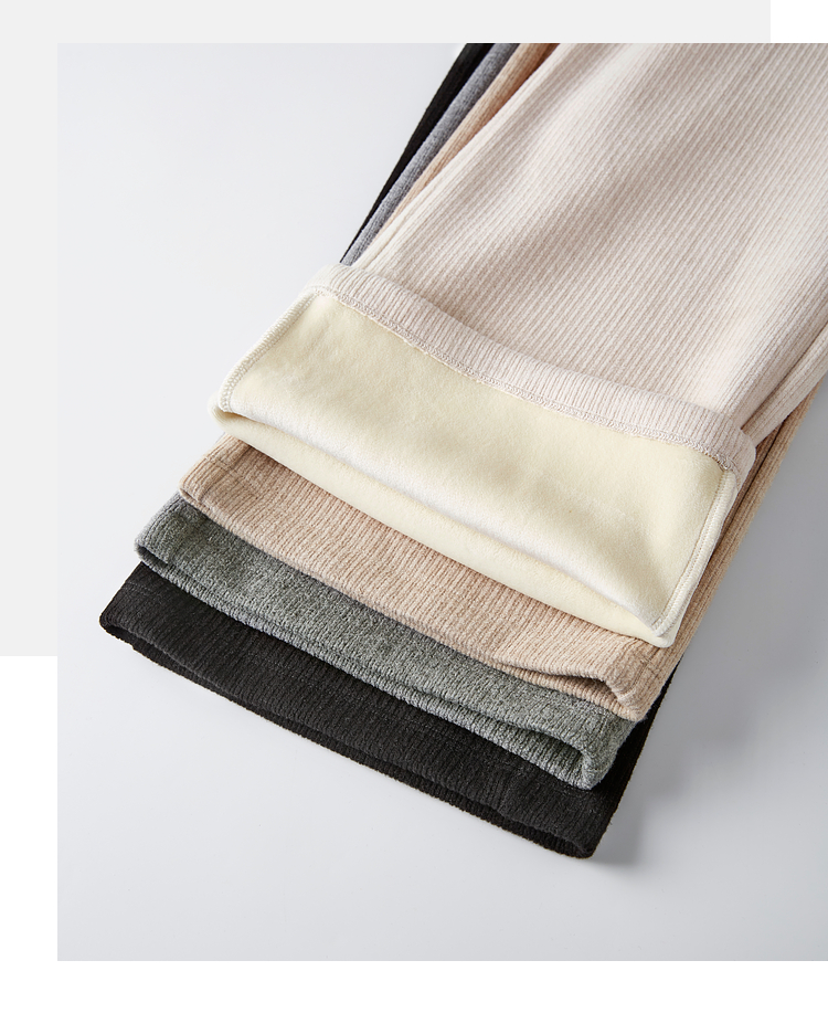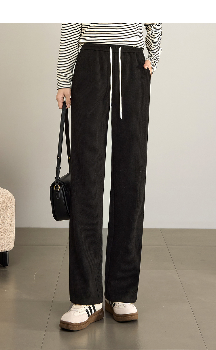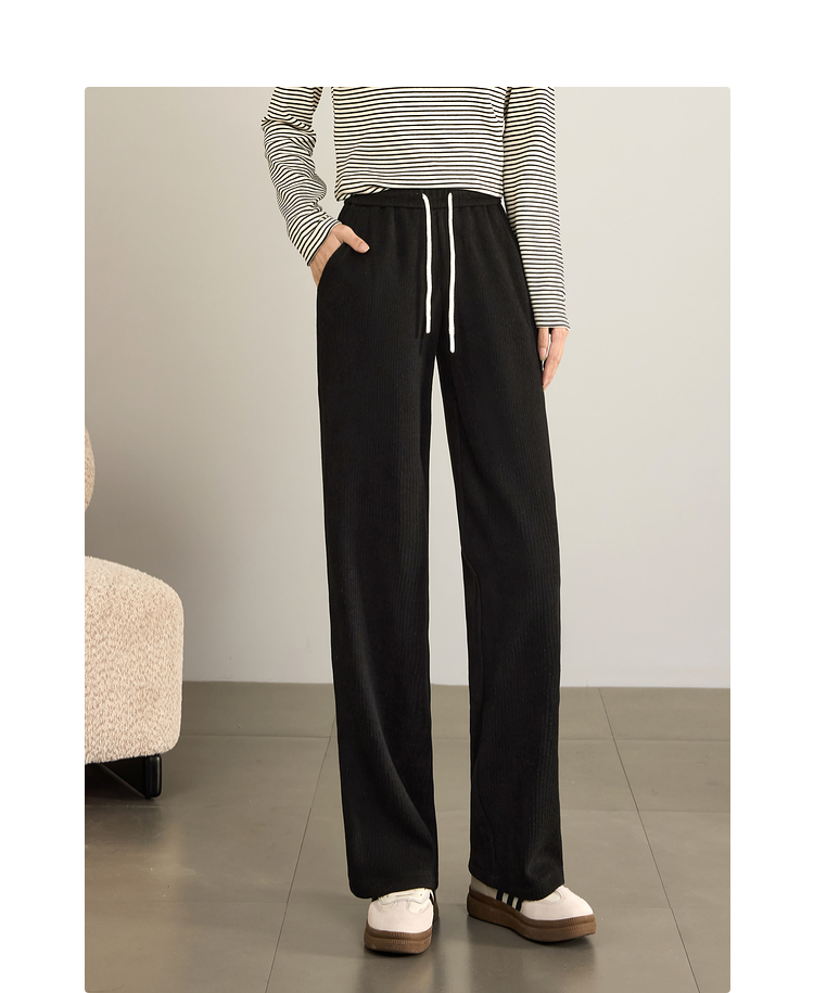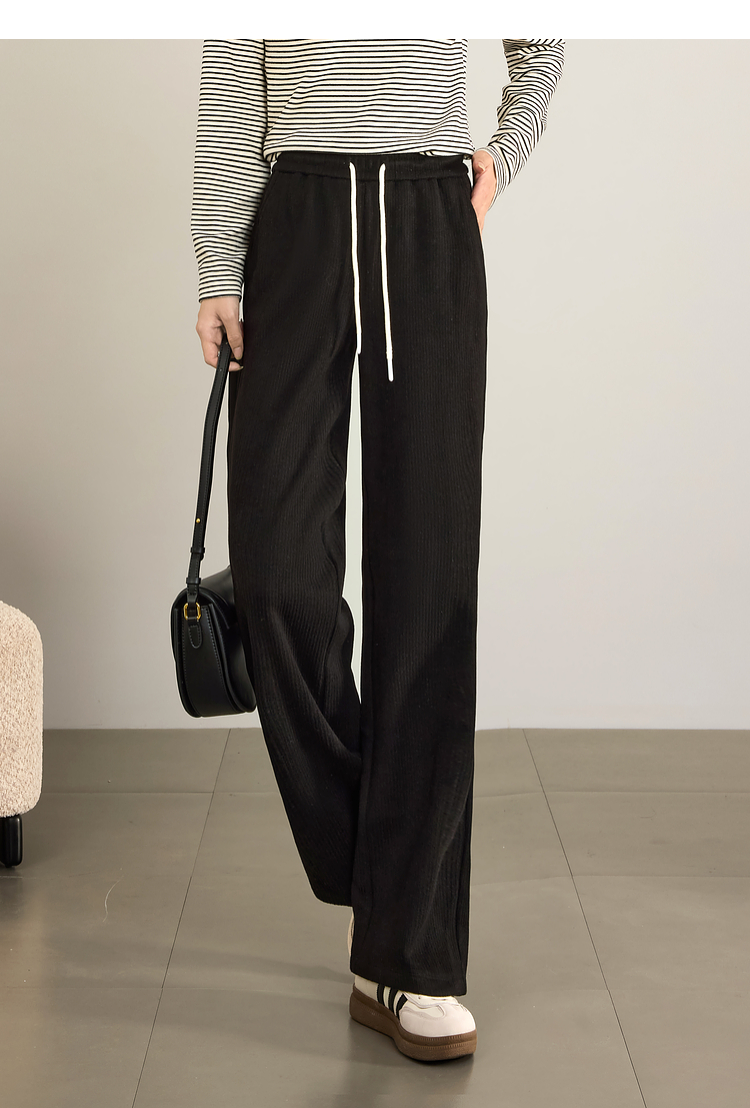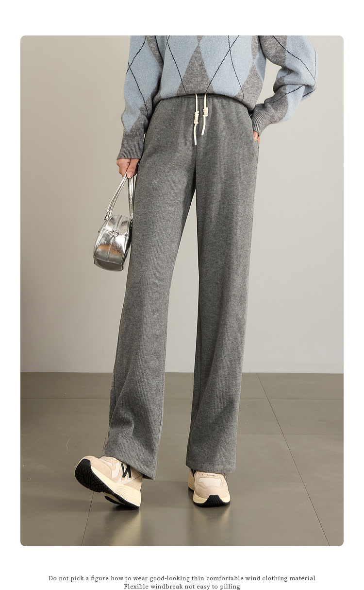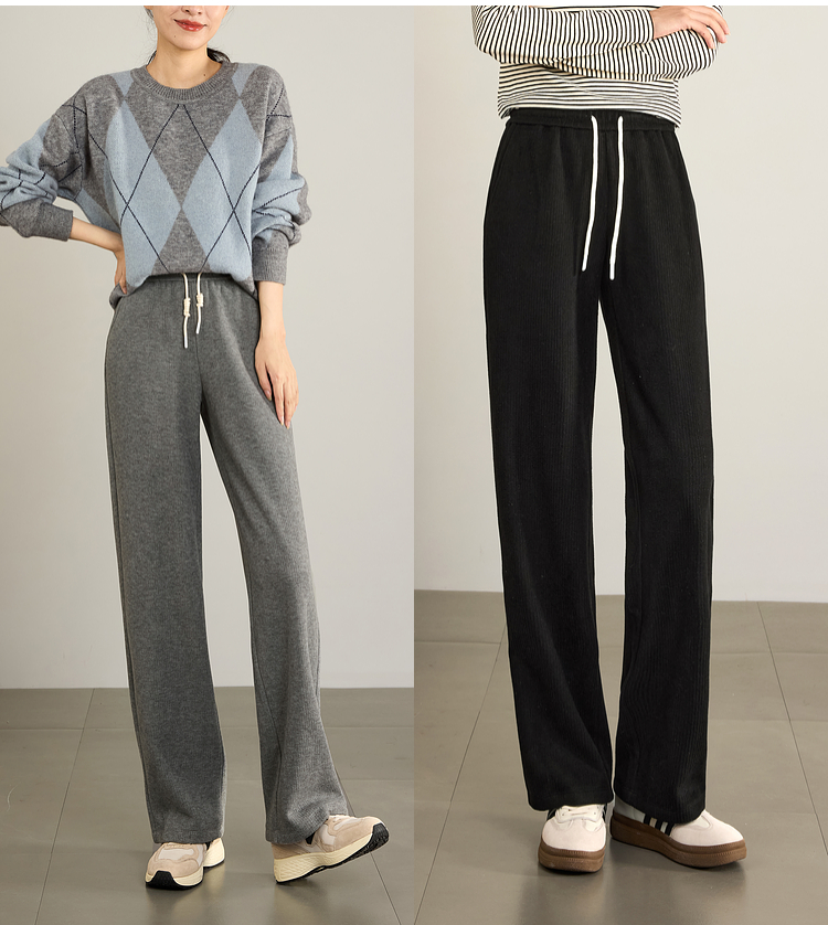 【年终特卖】熙世界肌理磨毛坑条糯米直筒裤秋冬加绒加厚休闲宽松阔腿长裤子
