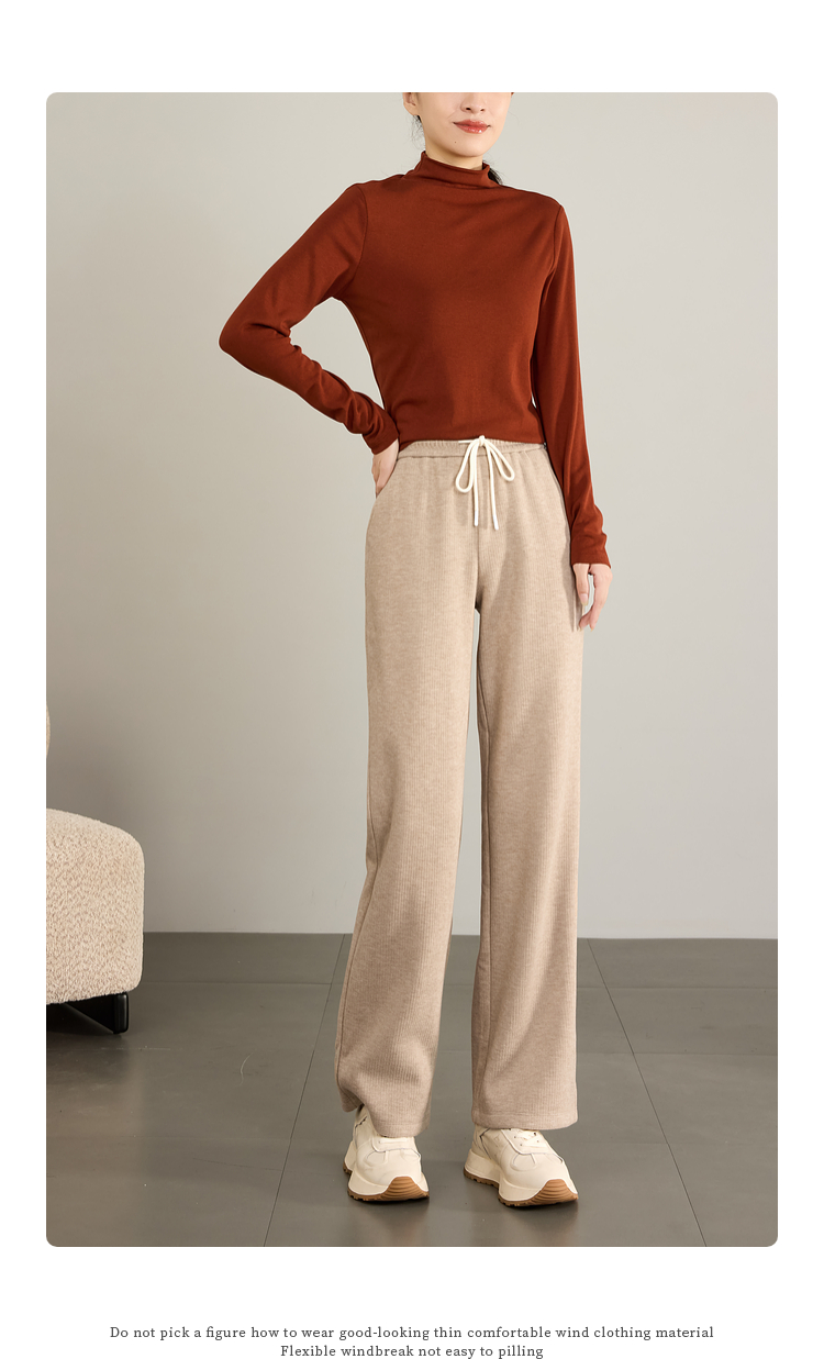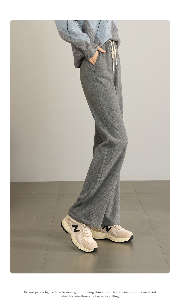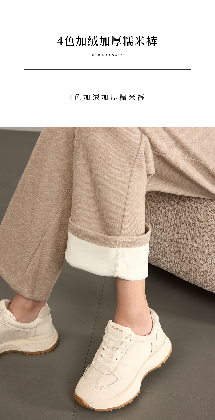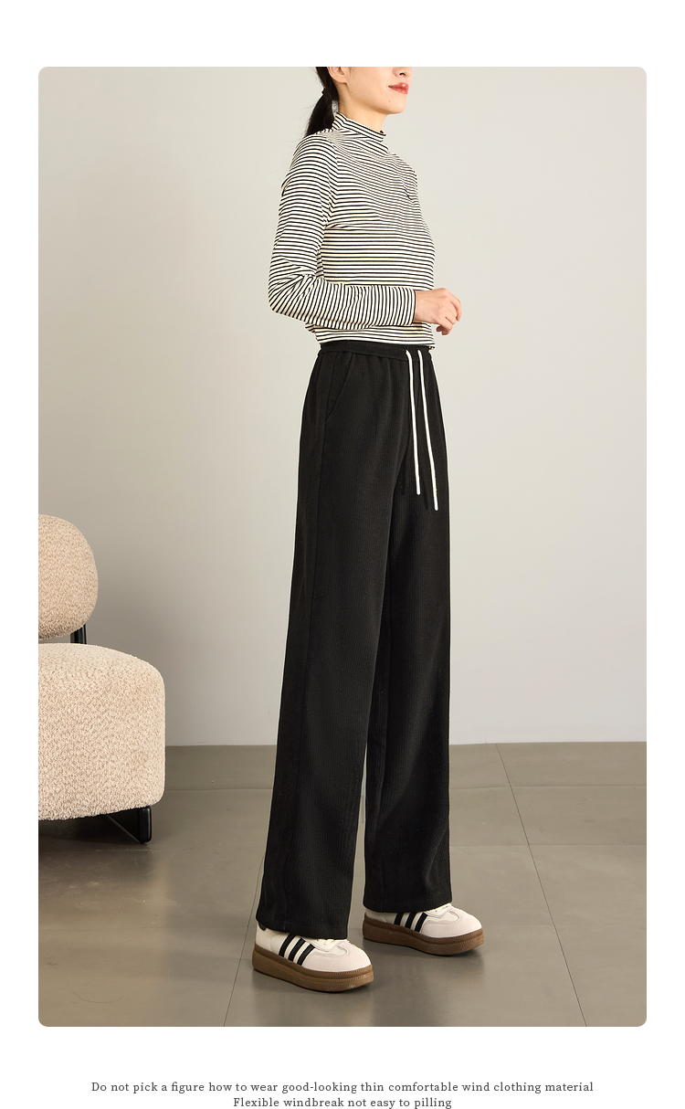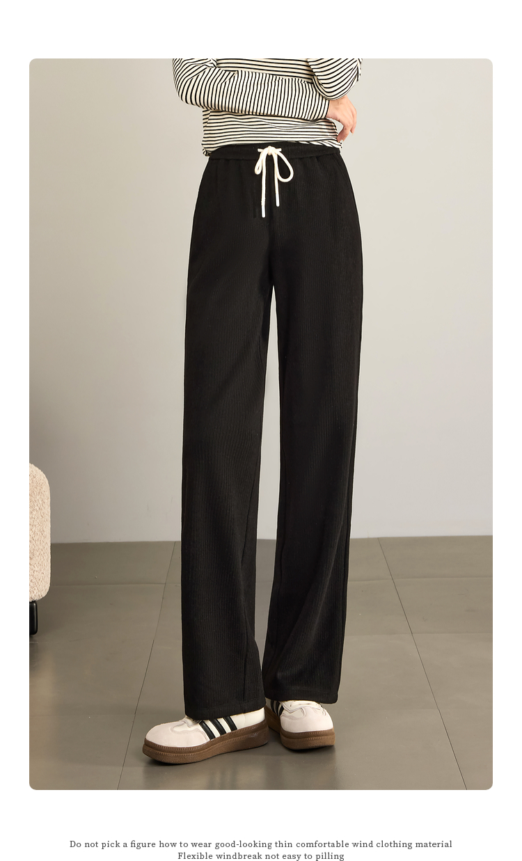 【年终特卖】熙世界肌理磨毛坑条糯米直筒裤秋冬加绒加厚休闲宽松阔腿长裤子