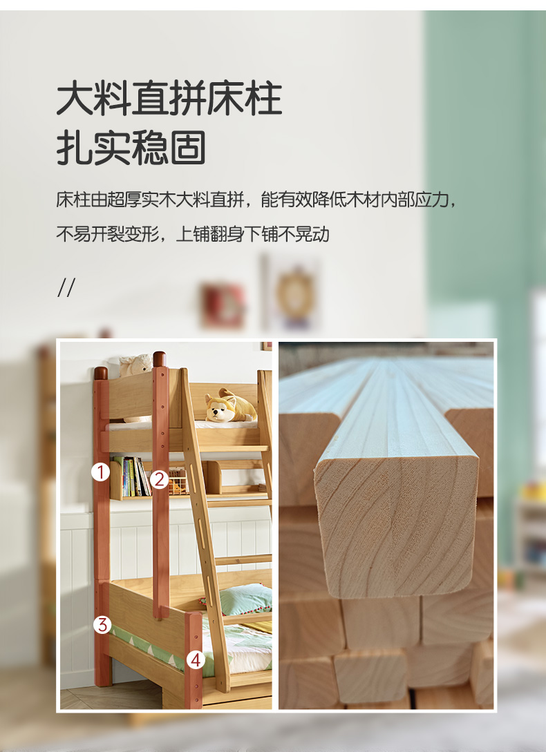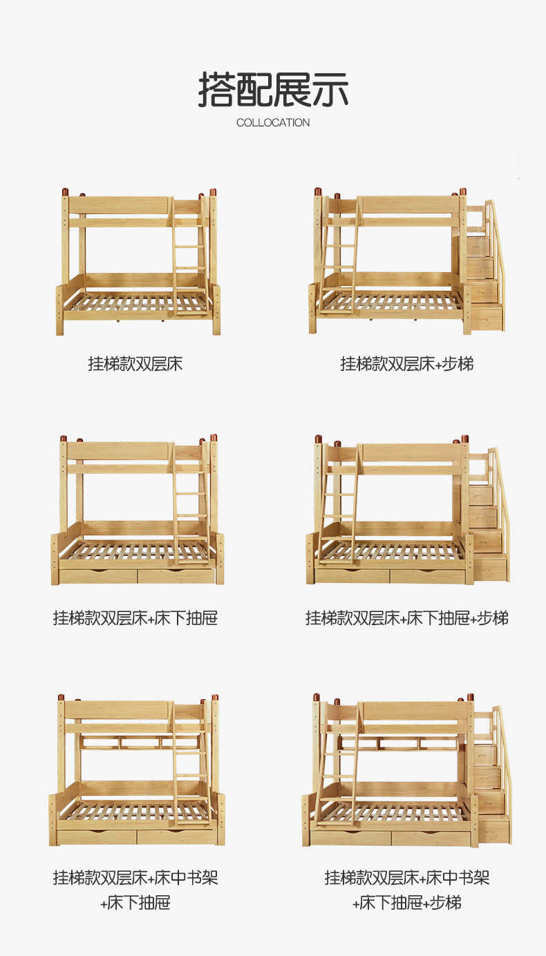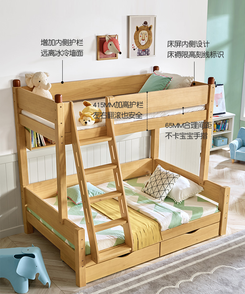 喜梦宝全实木子母床高低床儿童床上下床双层床小户型多功能书架床 小画家