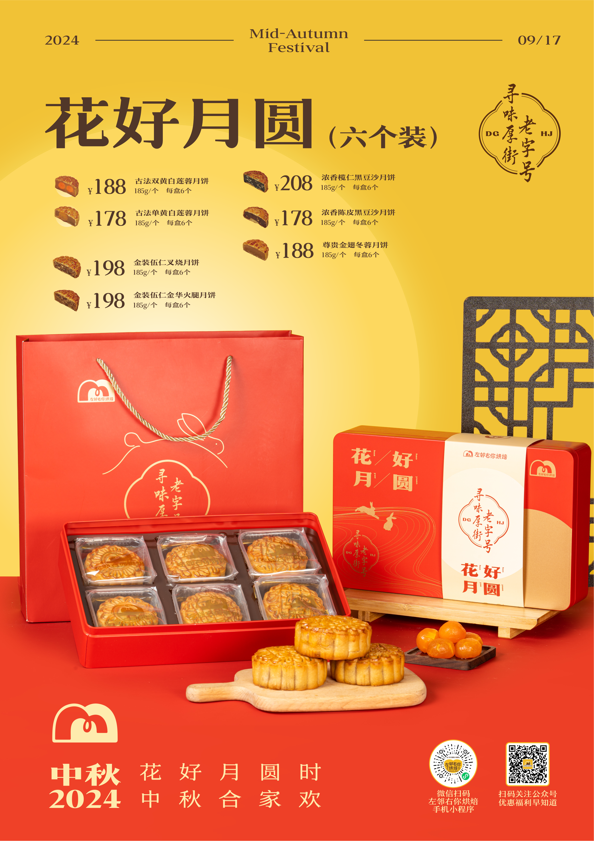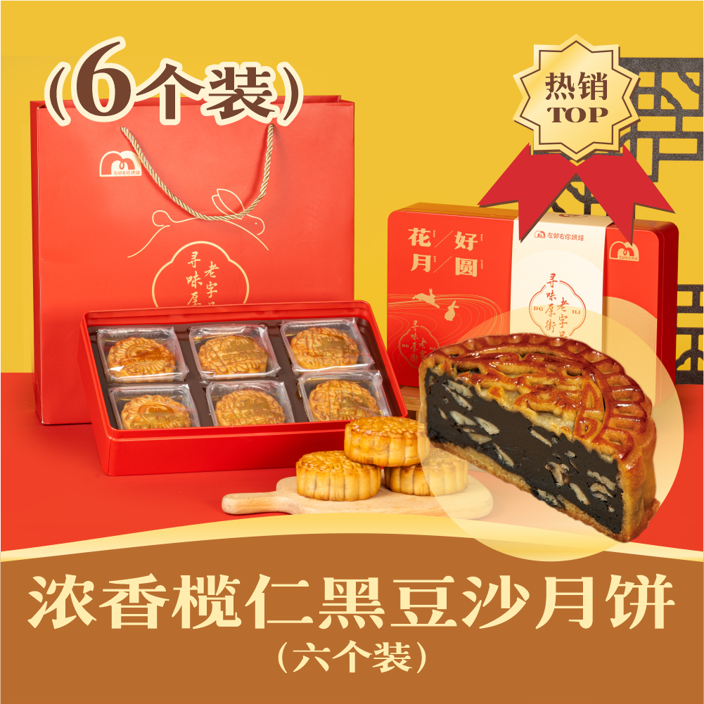 浓香榄仁黑豆沙月饼 | 6个装 花好月圆礼盒 2024中秋节