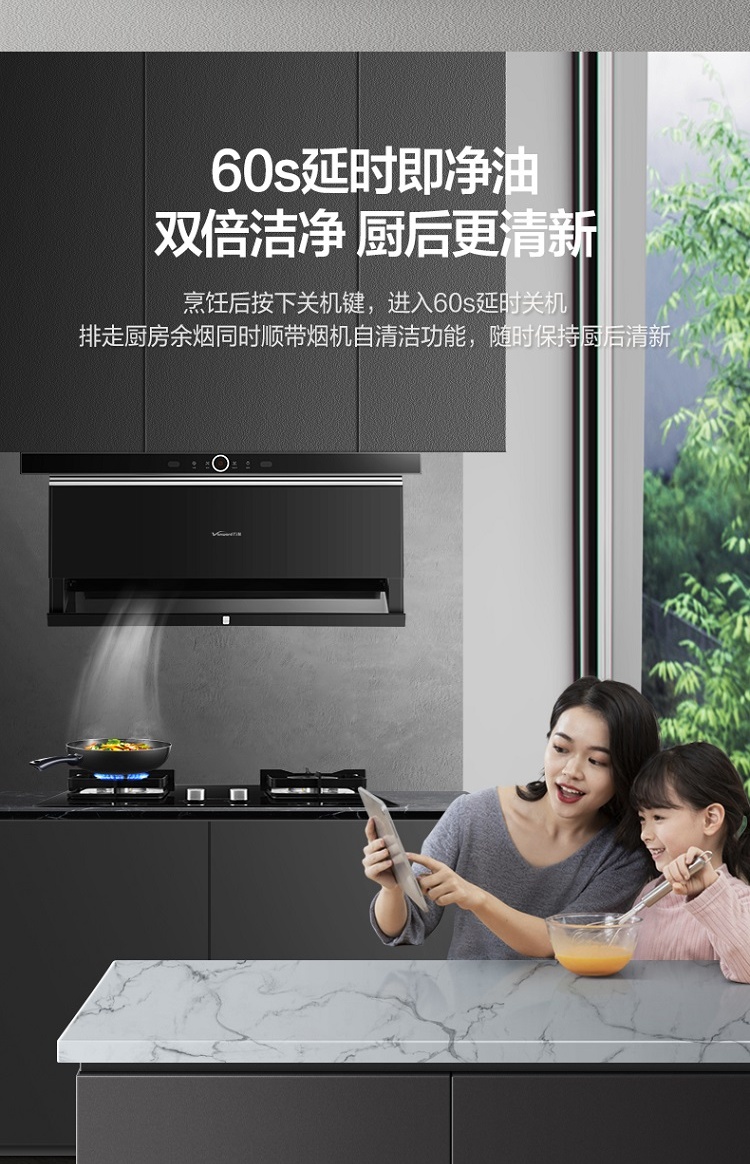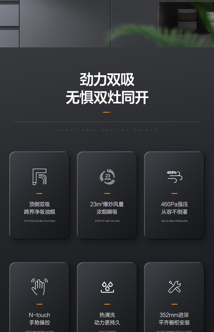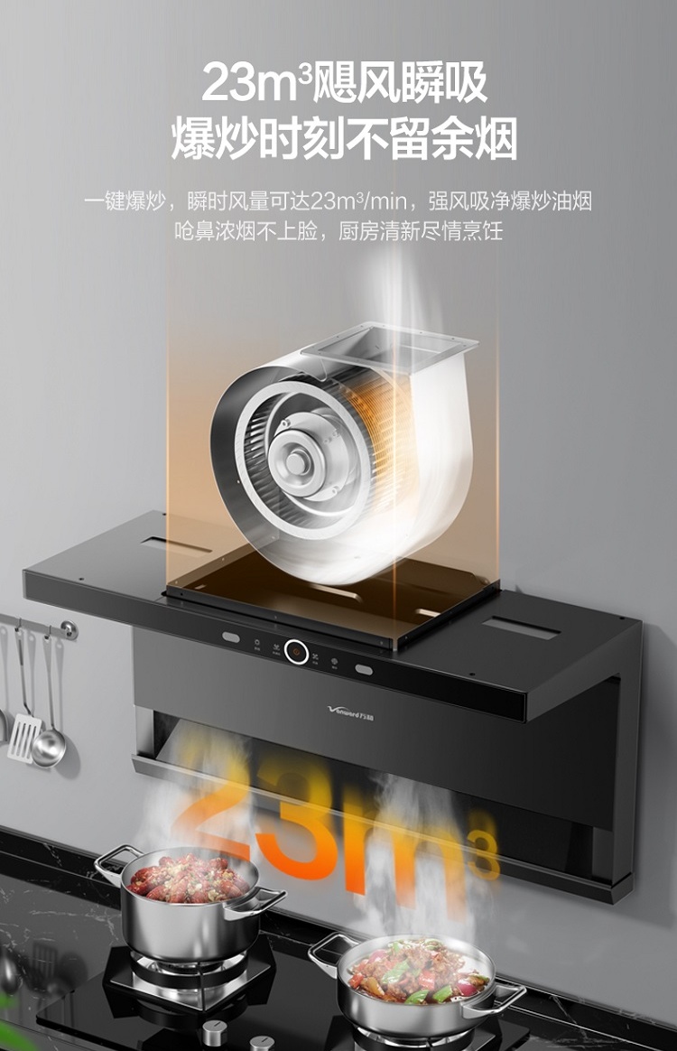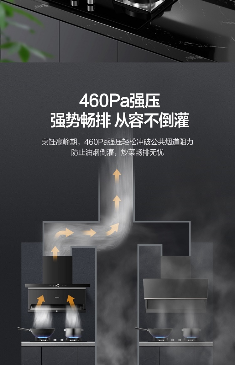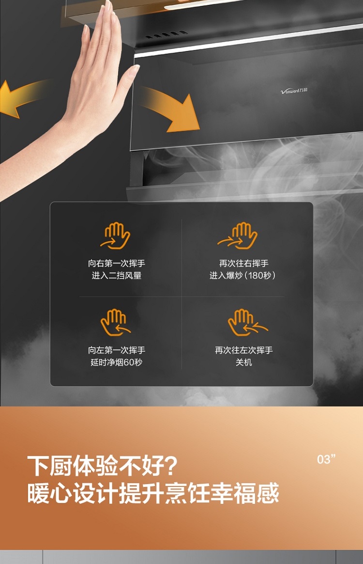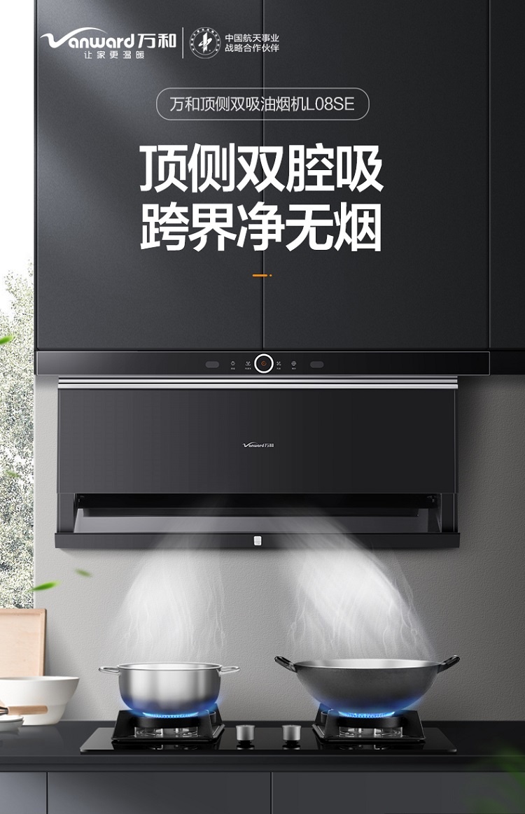 万和(Vanward)爆炒风量23立方 7字形 热干洗 顶侧双吸油烟CXW-310-L08SE