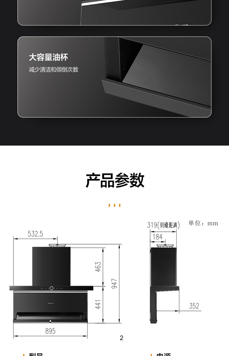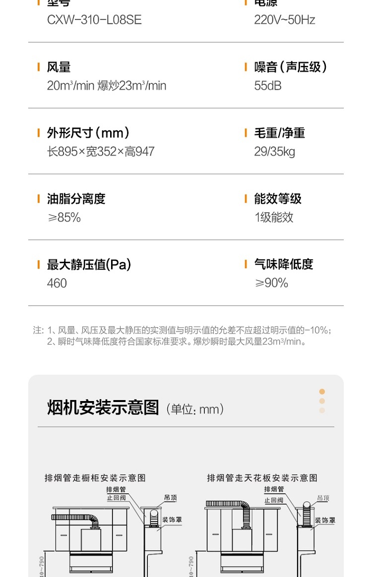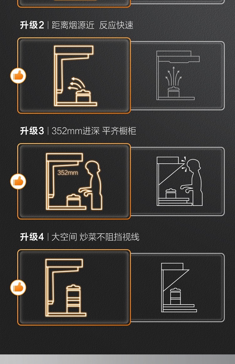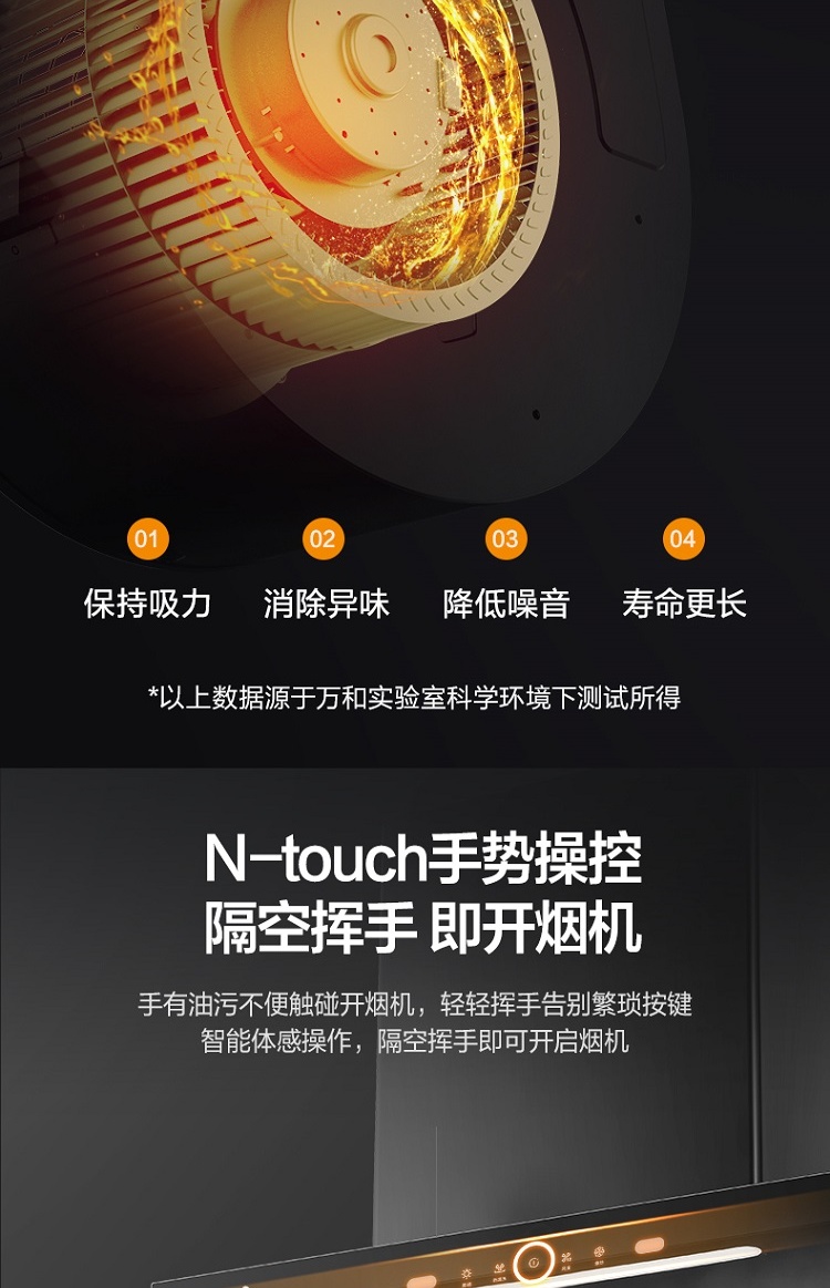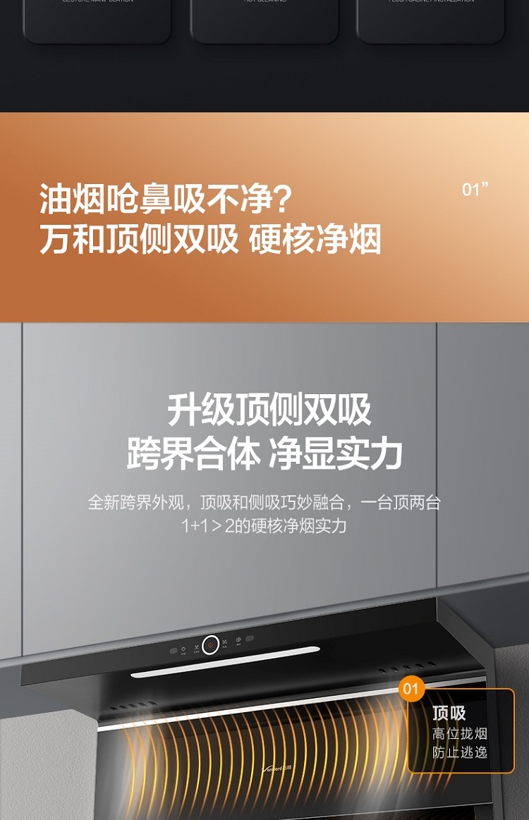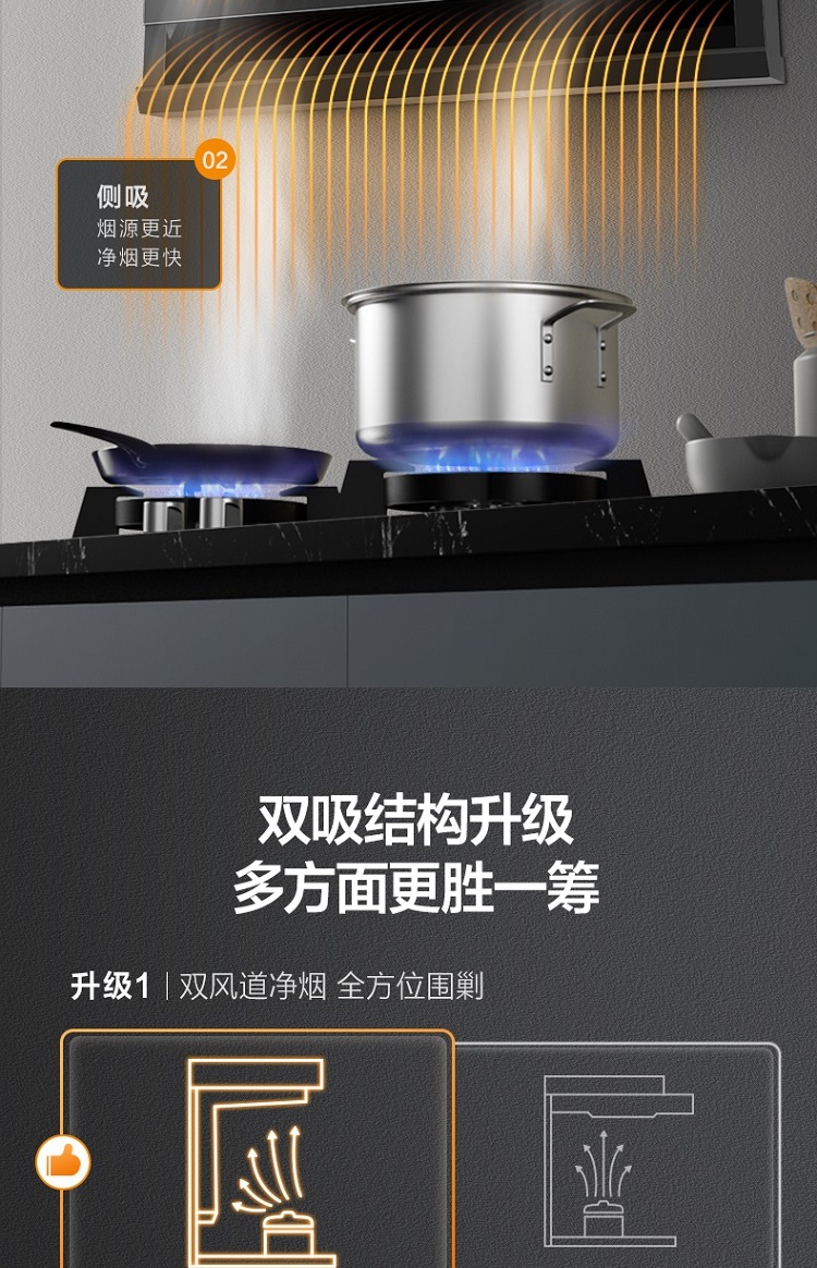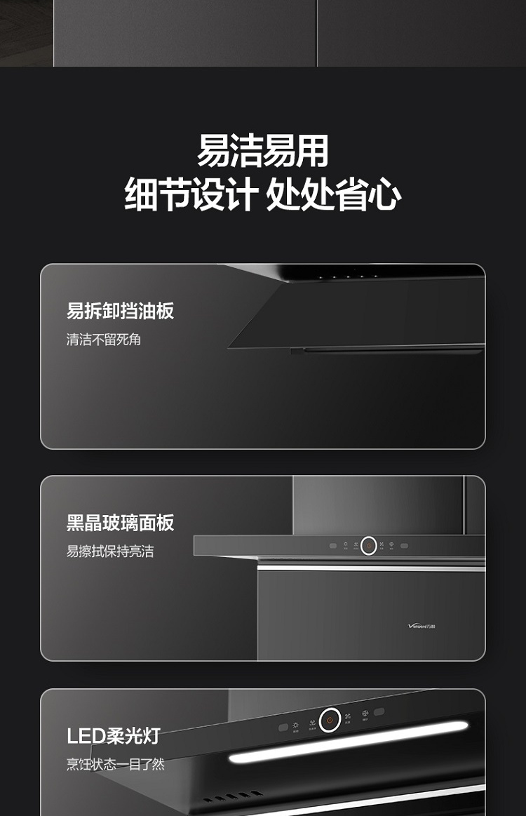 万和(Vanward)爆炒风量23立方 7字形 热干洗 顶侧双吸油烟CXW-310-L08SE