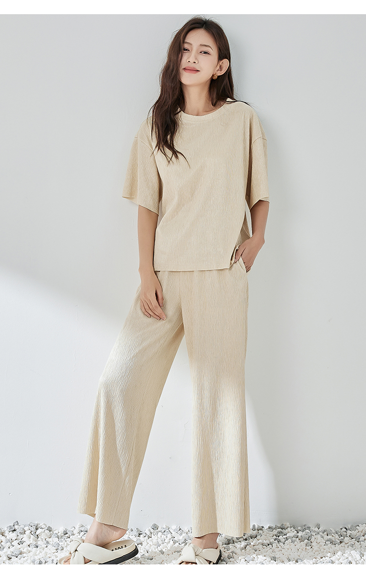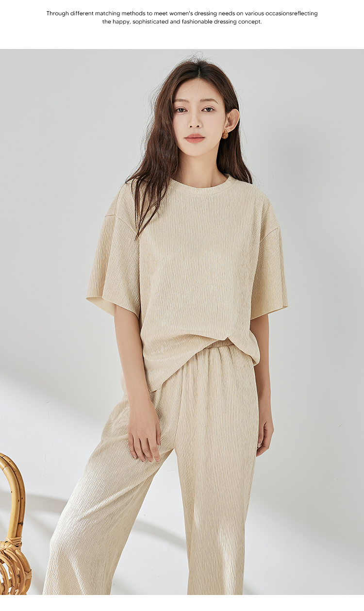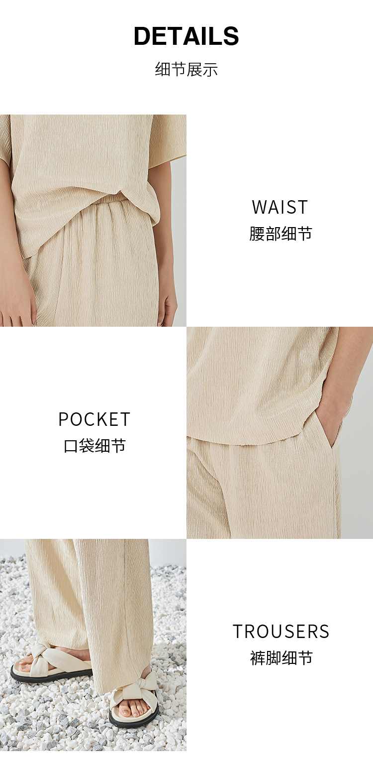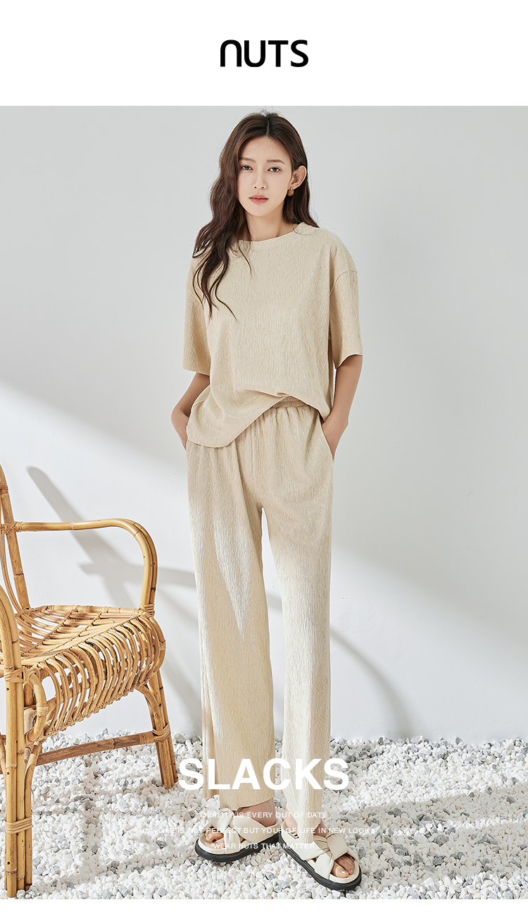 NUTS轻行套装夏季新款色织泡泡纱直筒裤322078156B