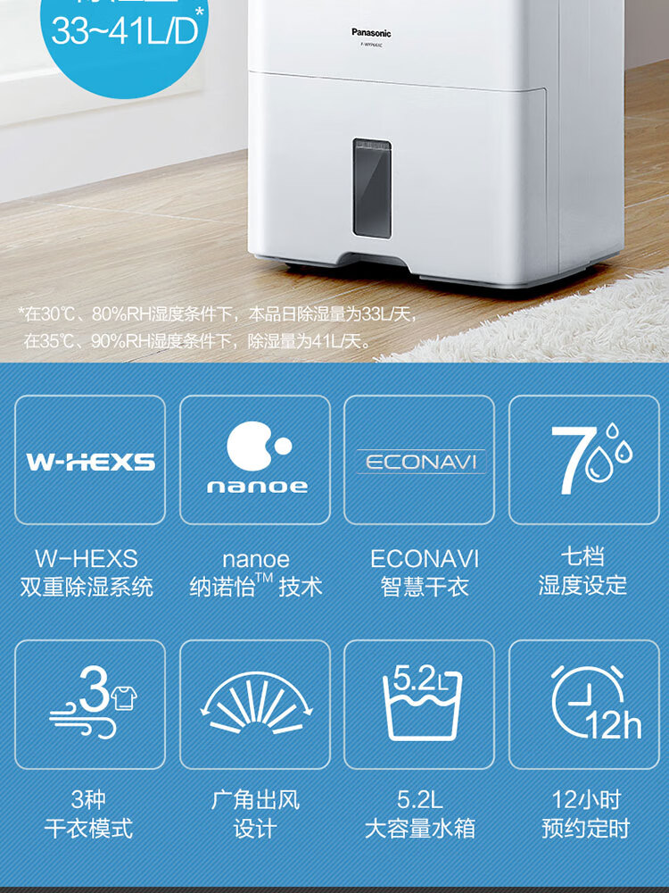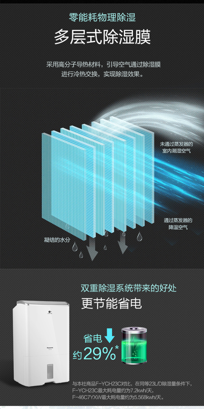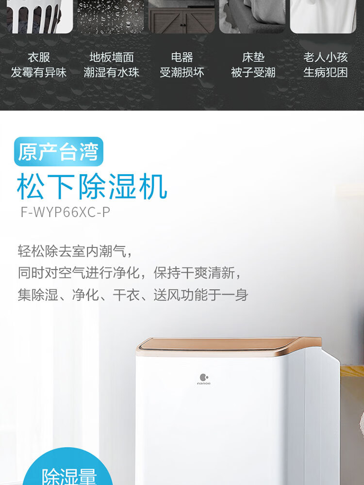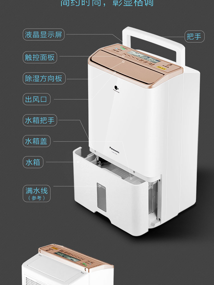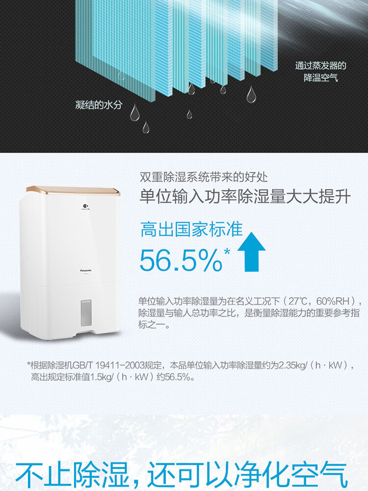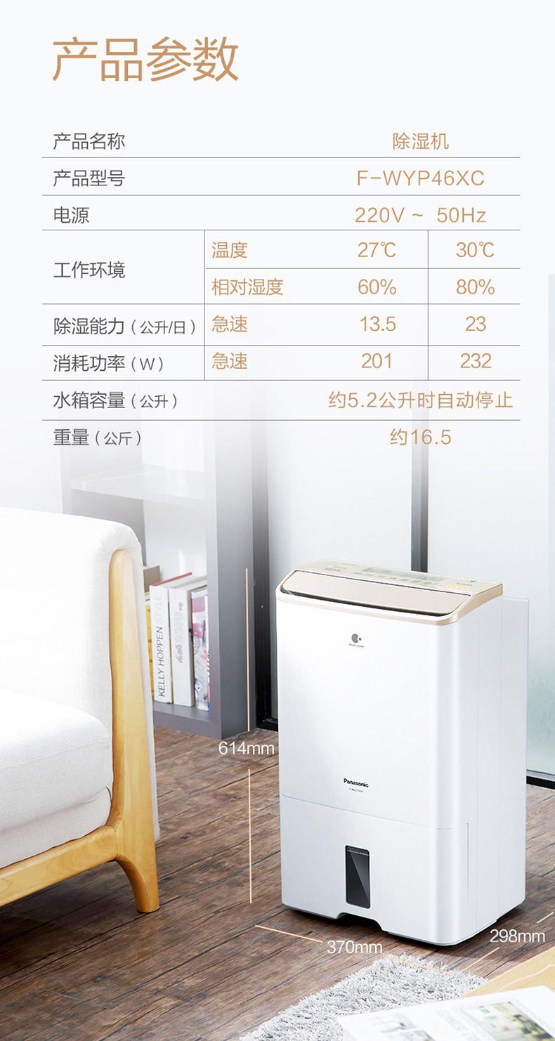 松下(Panasonic) 除湿机/抽湿机 原装进口 干衣大功率 F-WYP46XC【金色标准款-日除湿23L】