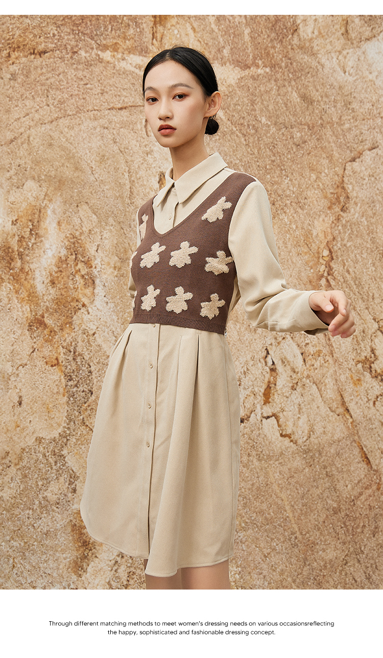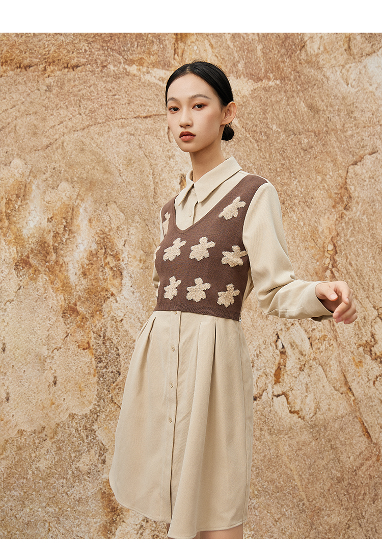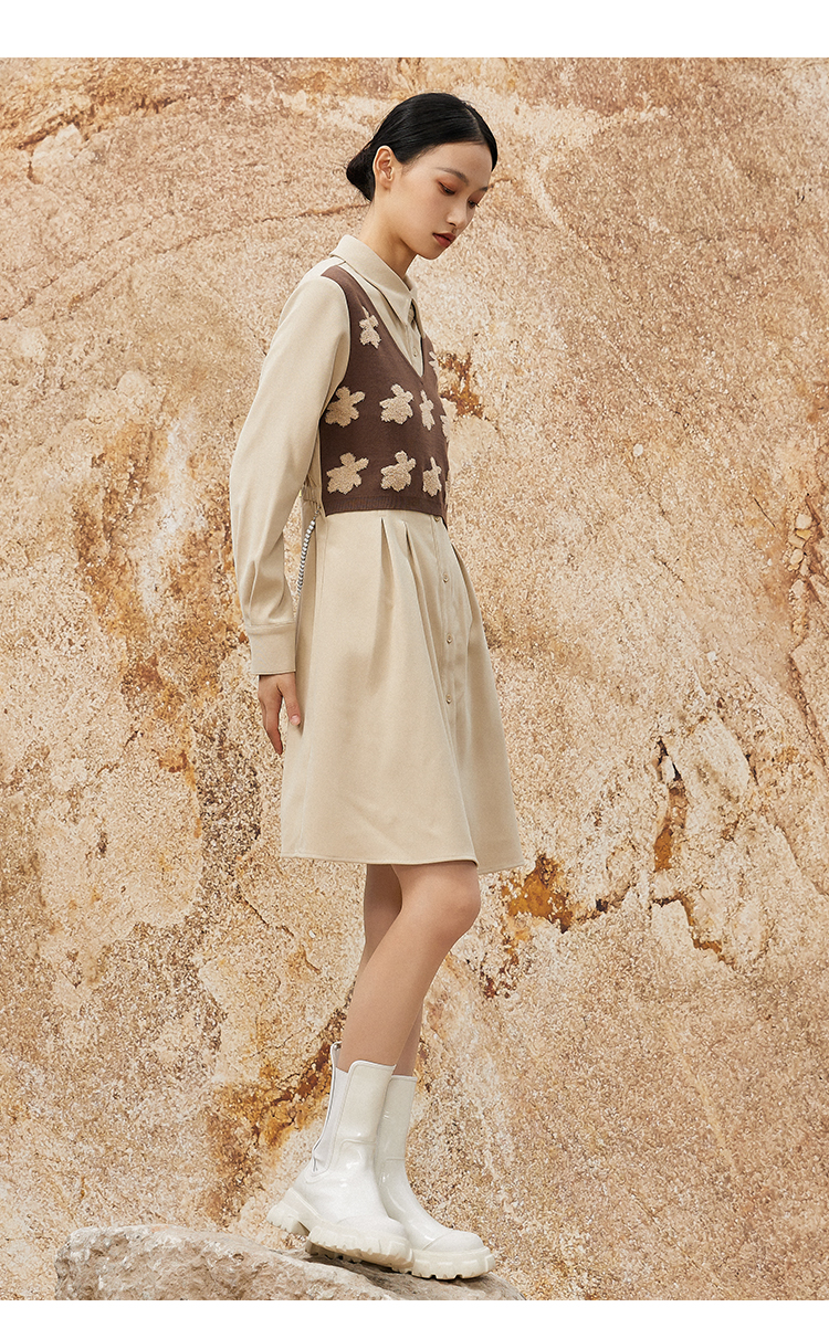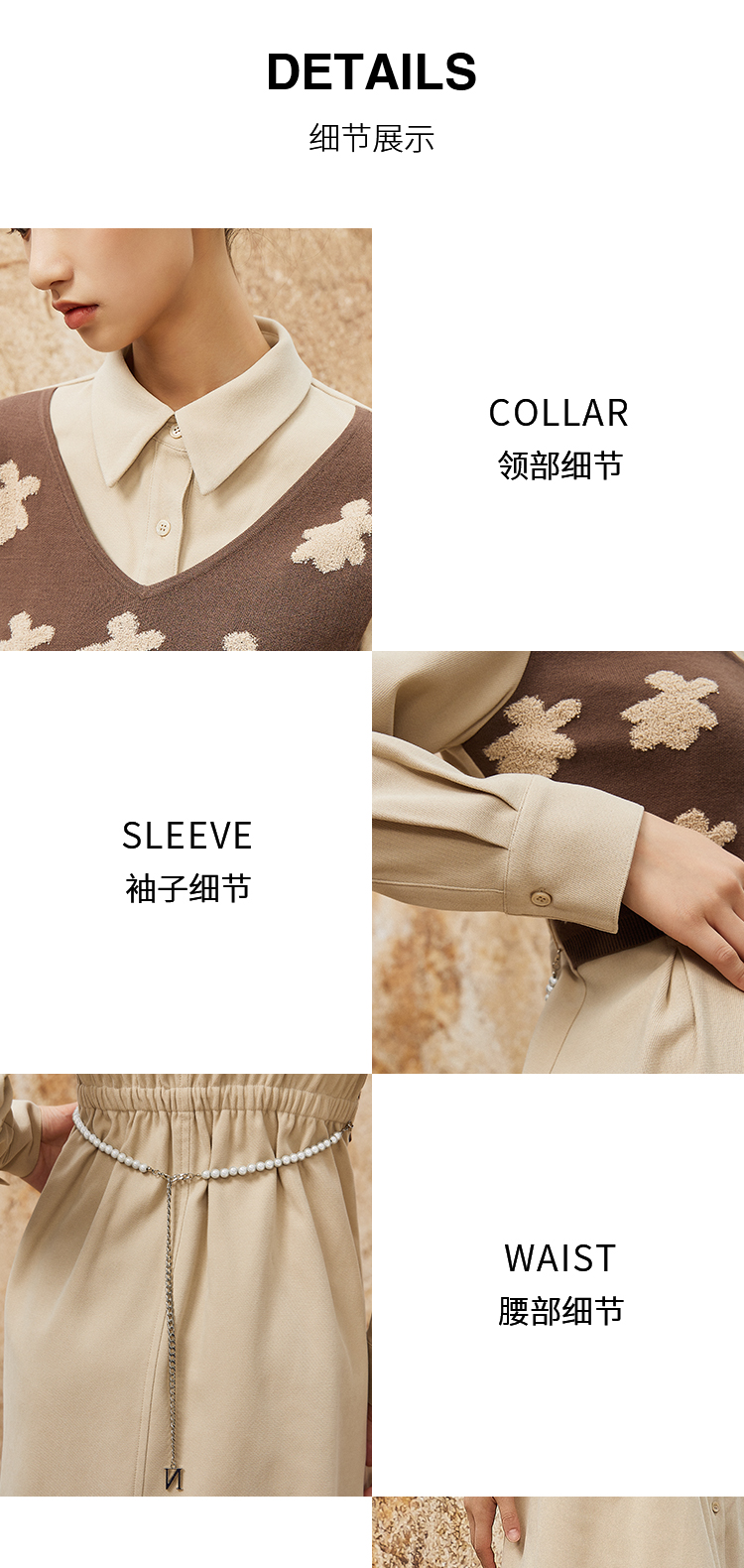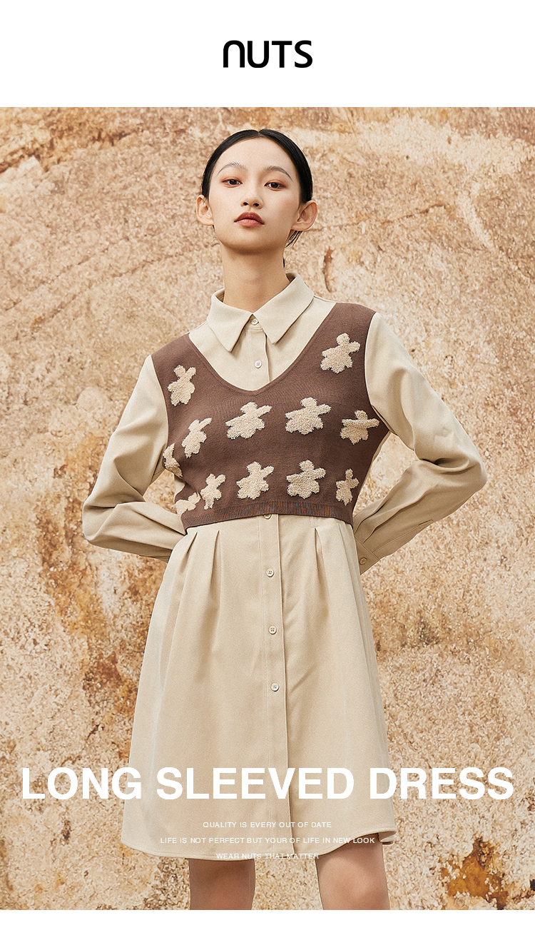 NUTS设计感气质百搭小众假两件修身衬衫长袖连衣裙女344101230