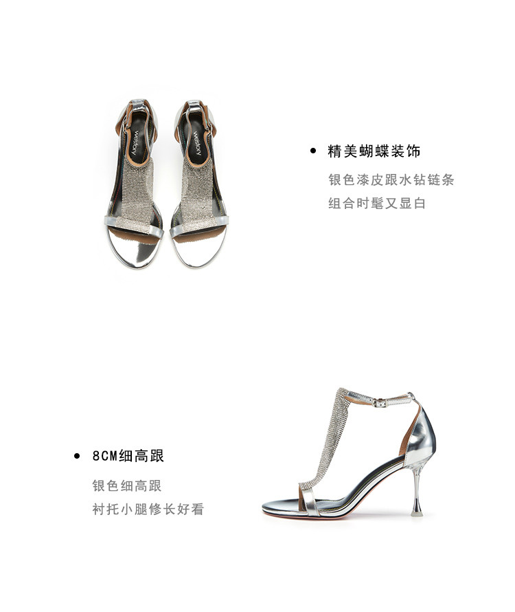 westory女鞋2023夏季新款尖头高跟细跟包头一字带凉鞋61611