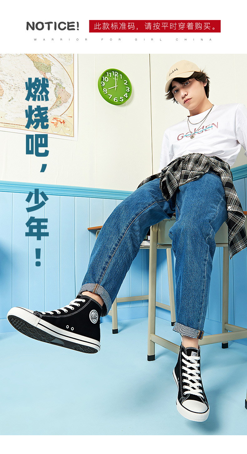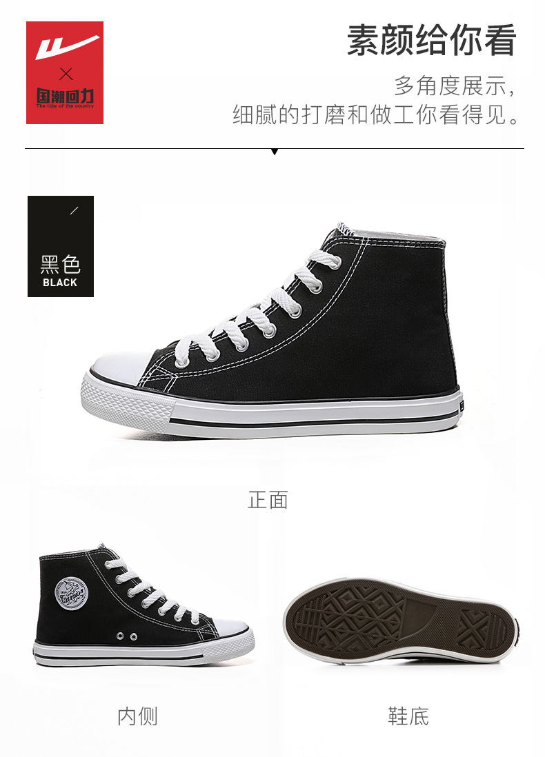 回力男女经典款2024新款高帮黑色帆布鞋薄款透气板鞋学生情侣百搭